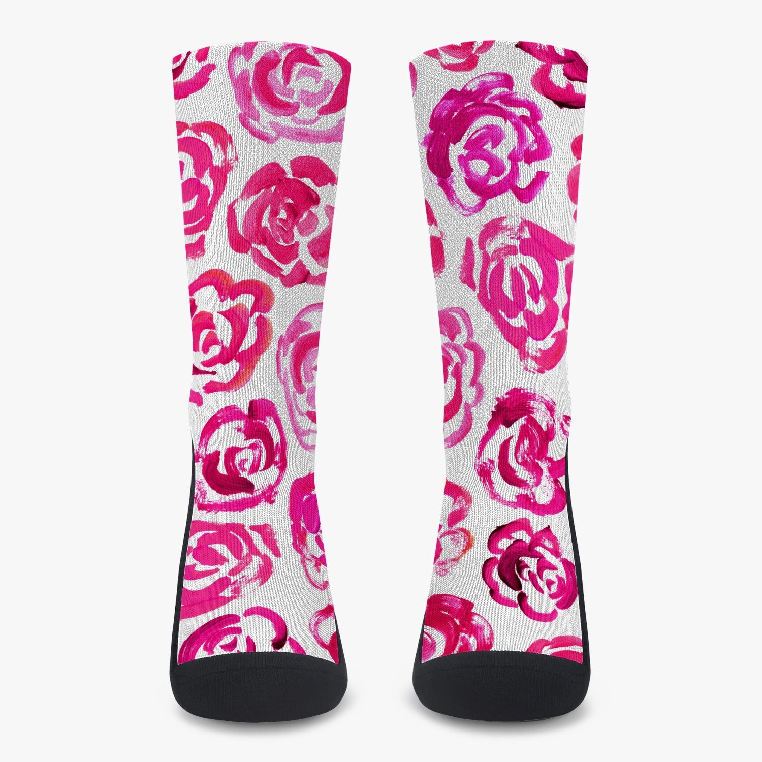 Floral print sports socks featuring dark pink flower blossoms. Reinforced for running & gym.