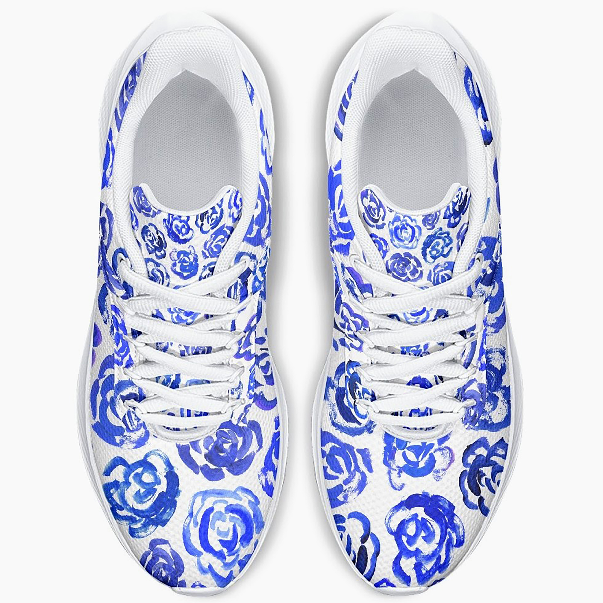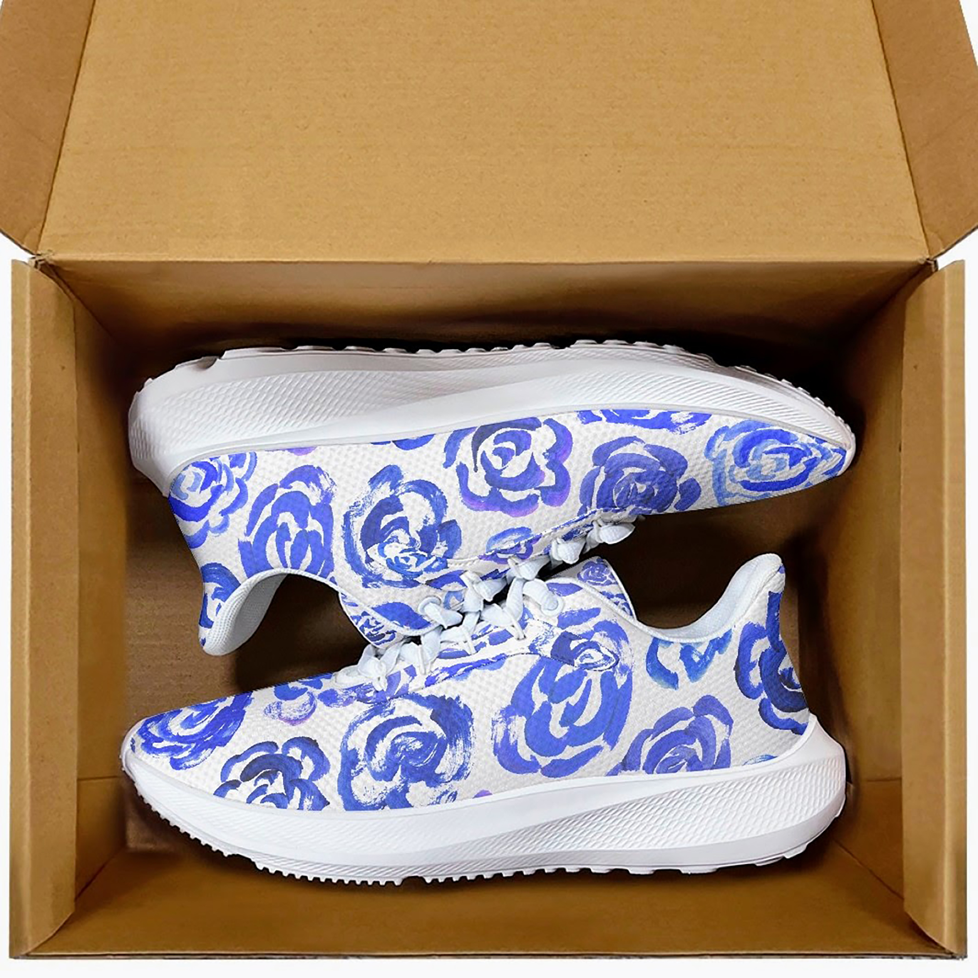 Blue Flower Shoes | Unisex Running Shoes with Dark Blue Flower Blossoms | Floral Patterned Sneakers