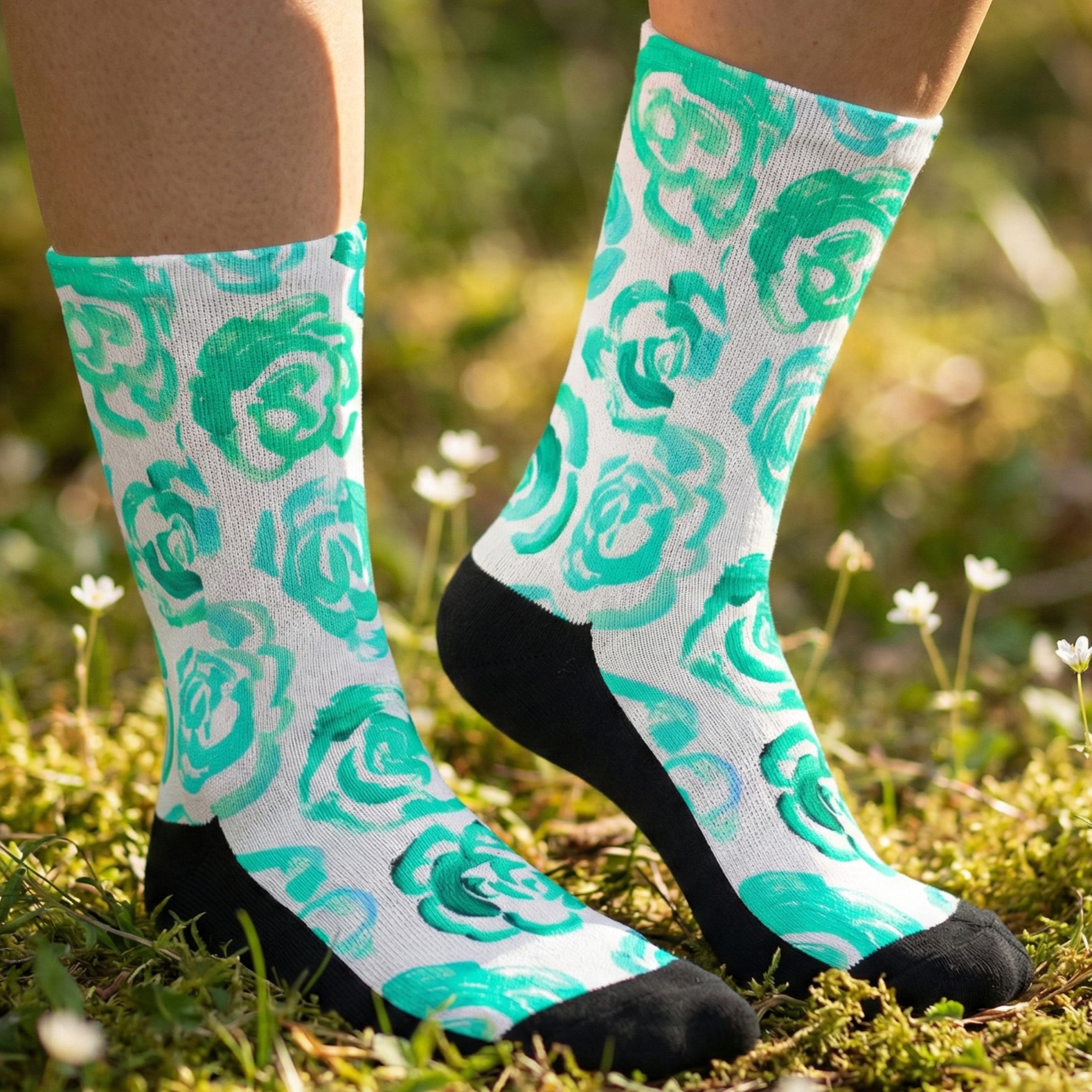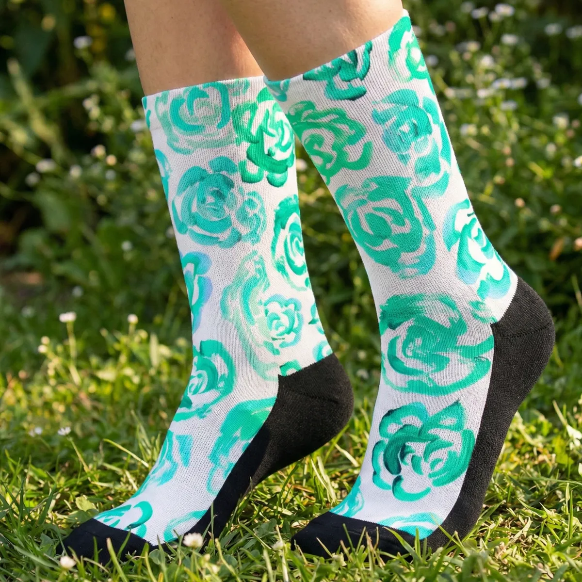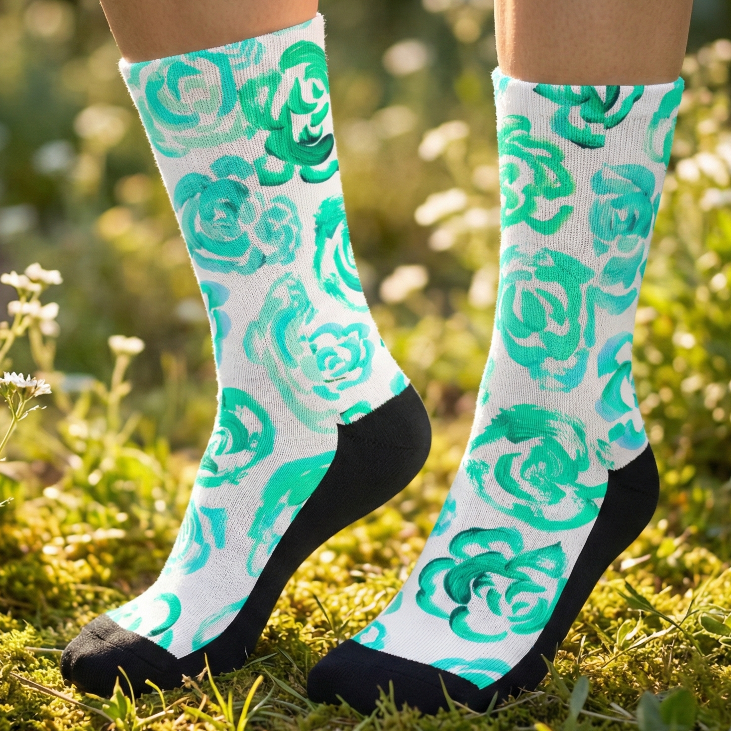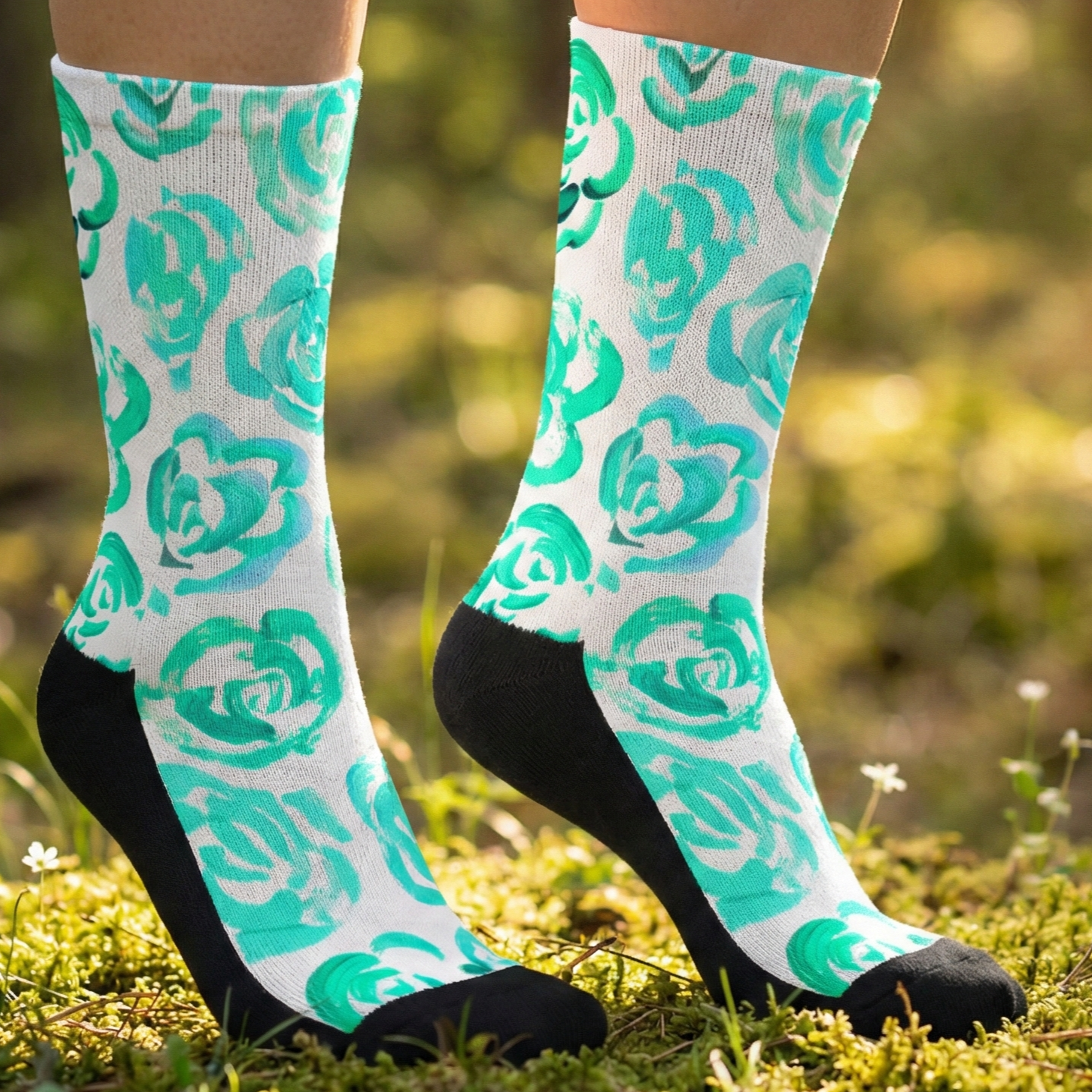 Add a bold botanical touch to your workout gear with these aqua flower blossom socks. Whether you are a marathon runner, a gym enthusiast, or just someone who loves cool socks, this pair blends high-performance engineering with a unique artsy aesthetic.
