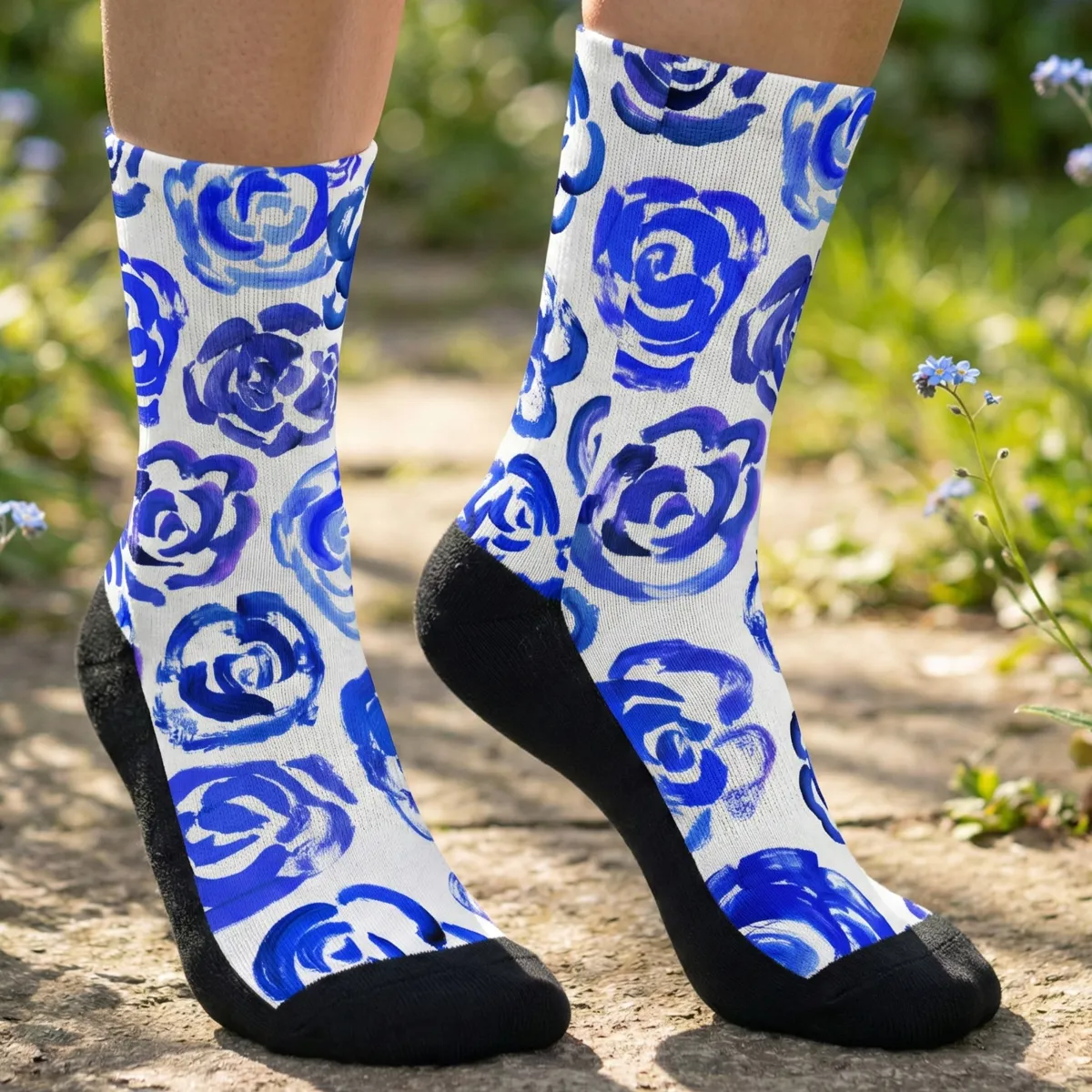 Add a bold botanical touch to your workout gear with these blue flower blossom socks. Whether you are a marathon runner, a gym enthusiast, or just someone who loves cool socks, this pair blends high-performance engineering with a unique artsy aesthetic.