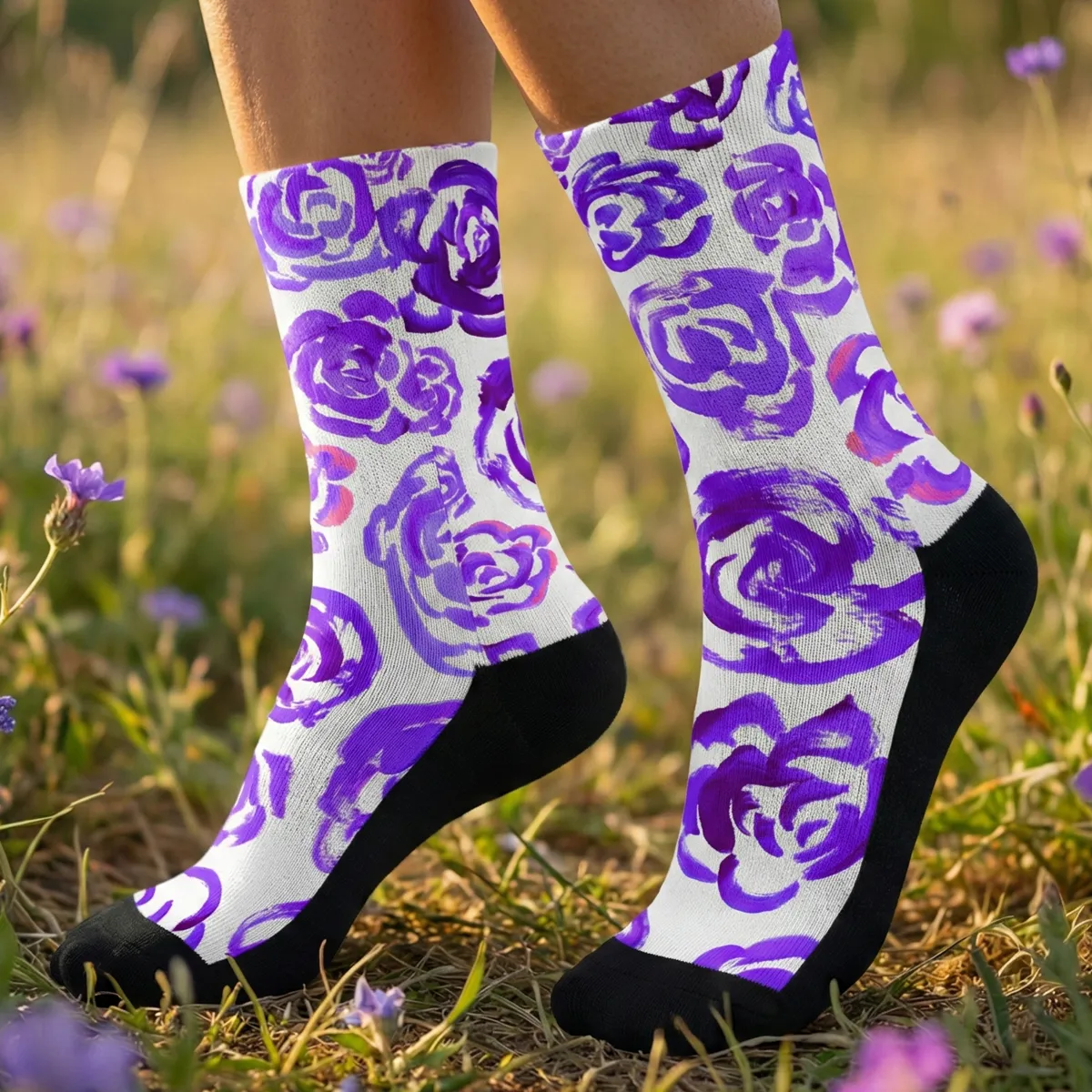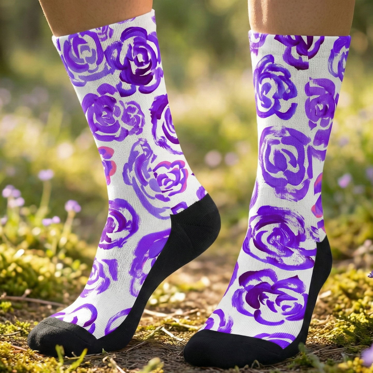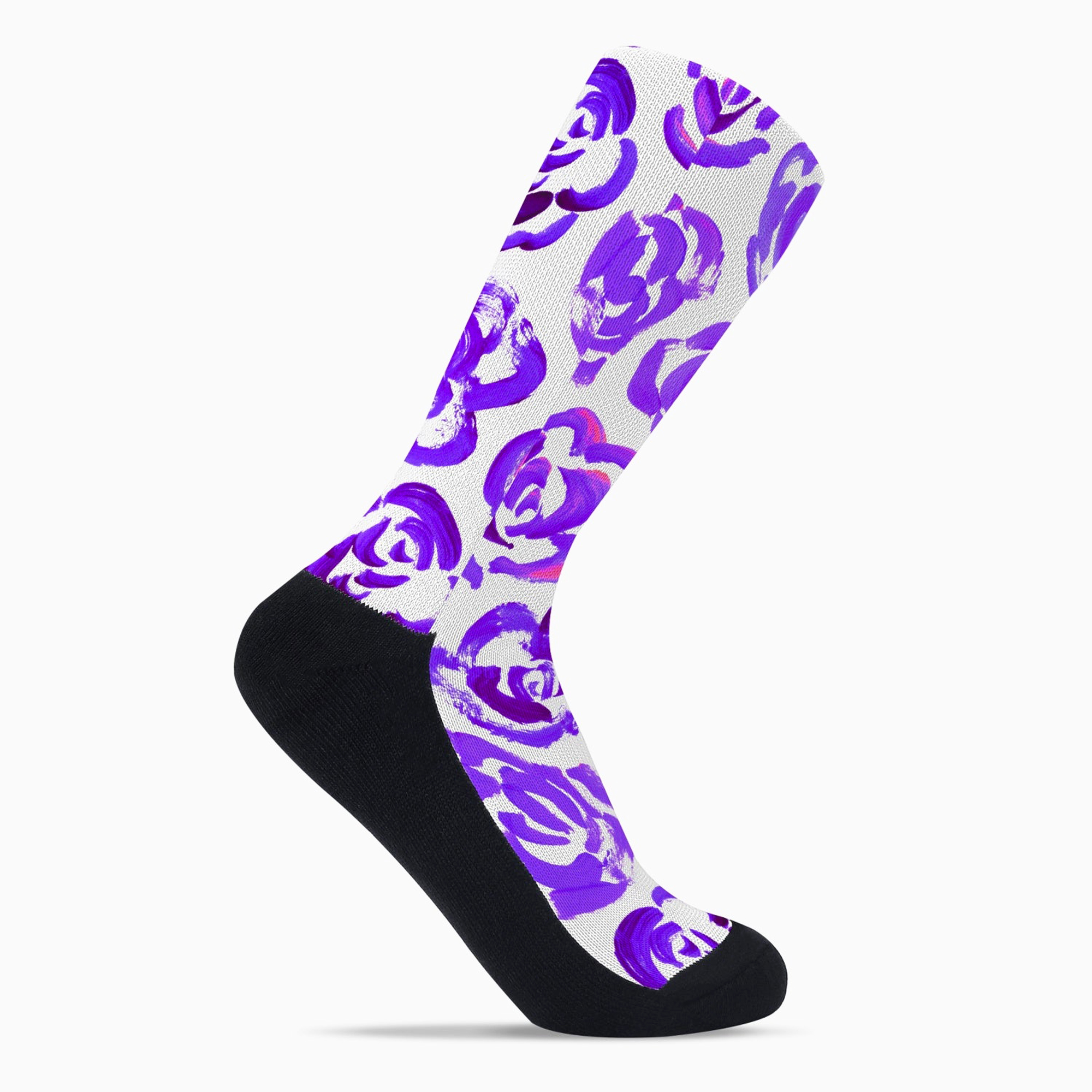 Add a bold botanical touch to your workout gear with these purple flower blossom socks. Whether you are a marathon runner, a gym enthusiast, or just someone who loves cool socks, this pair blends high-performance engineering with a unique artsy aesthetic.