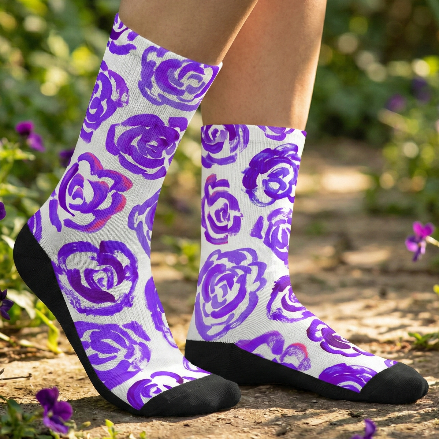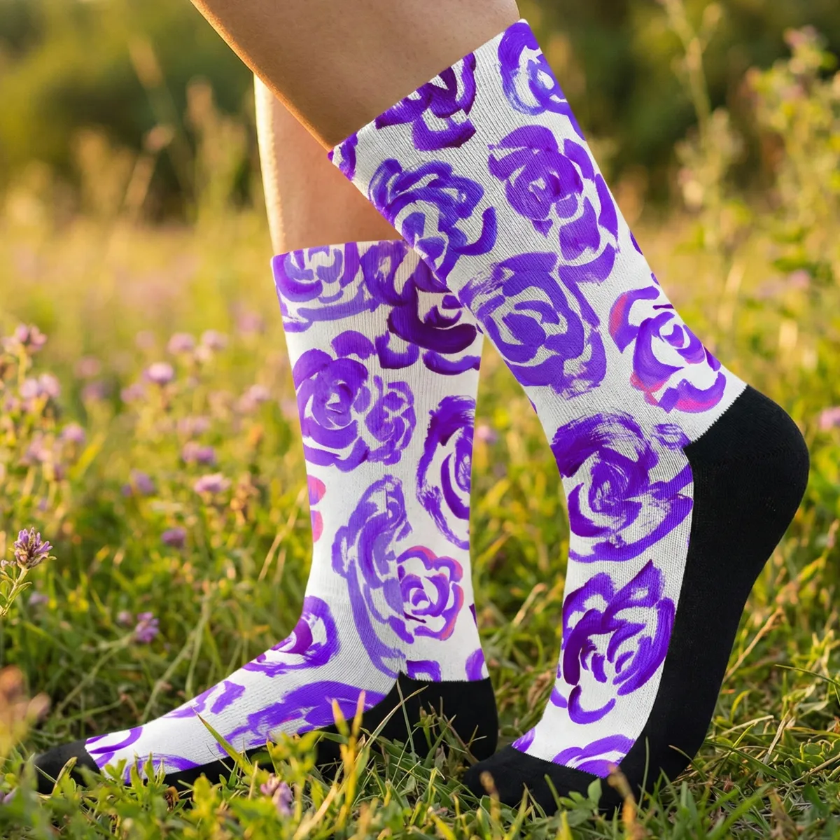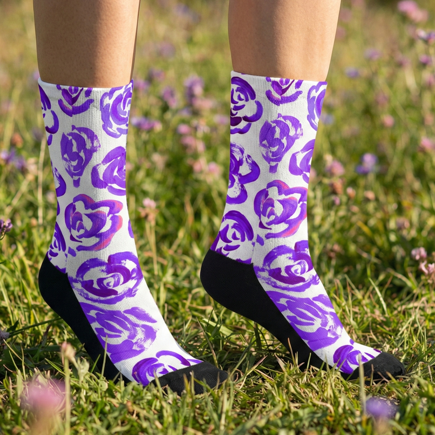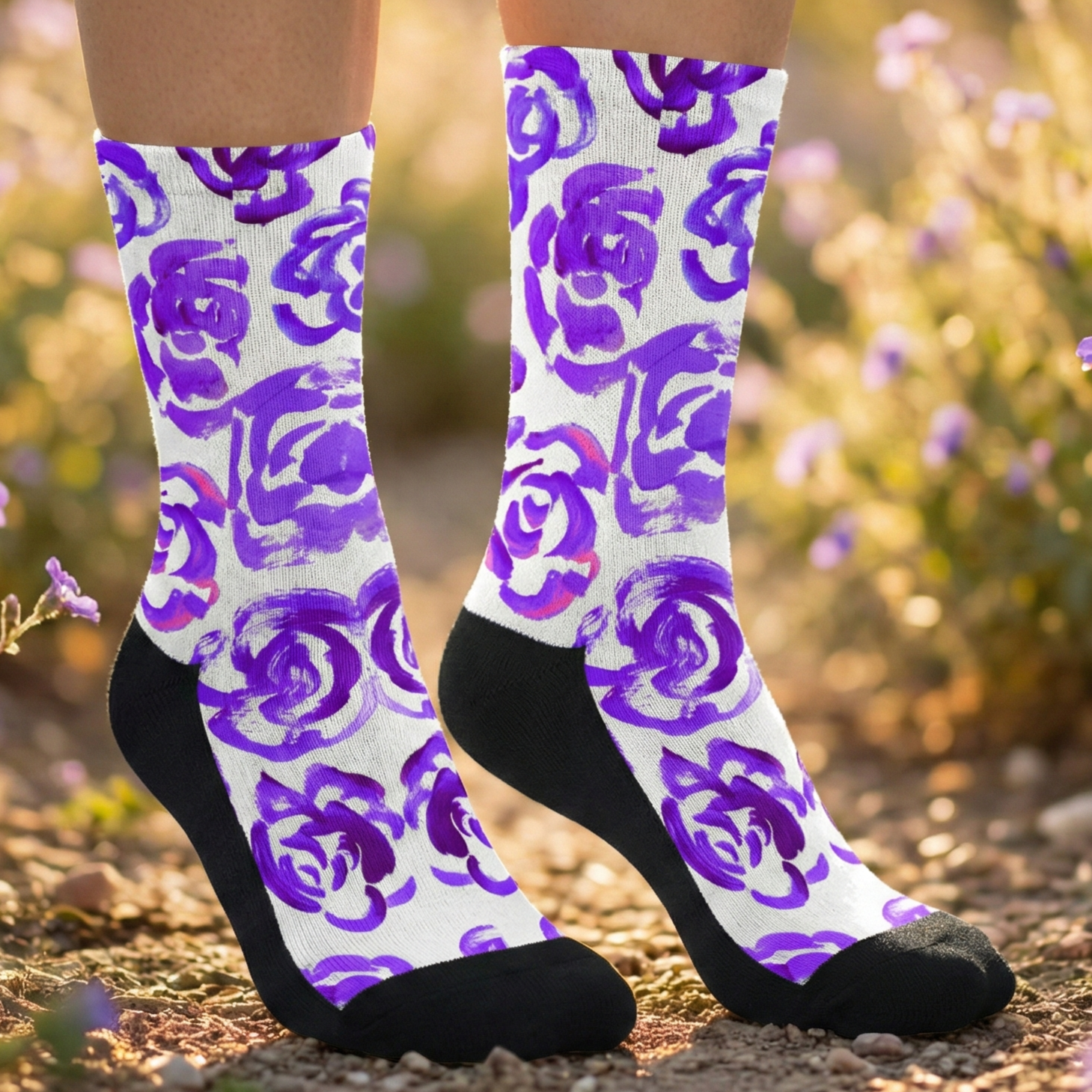 Add a bold botanical touch to your workout gear with these purple flower blossom socks. Whether you are a marathon runner, a gym enthusiast, or just someone who loves cool socks, this pair blends high-performance engineering with a unique artsy aesthetic.