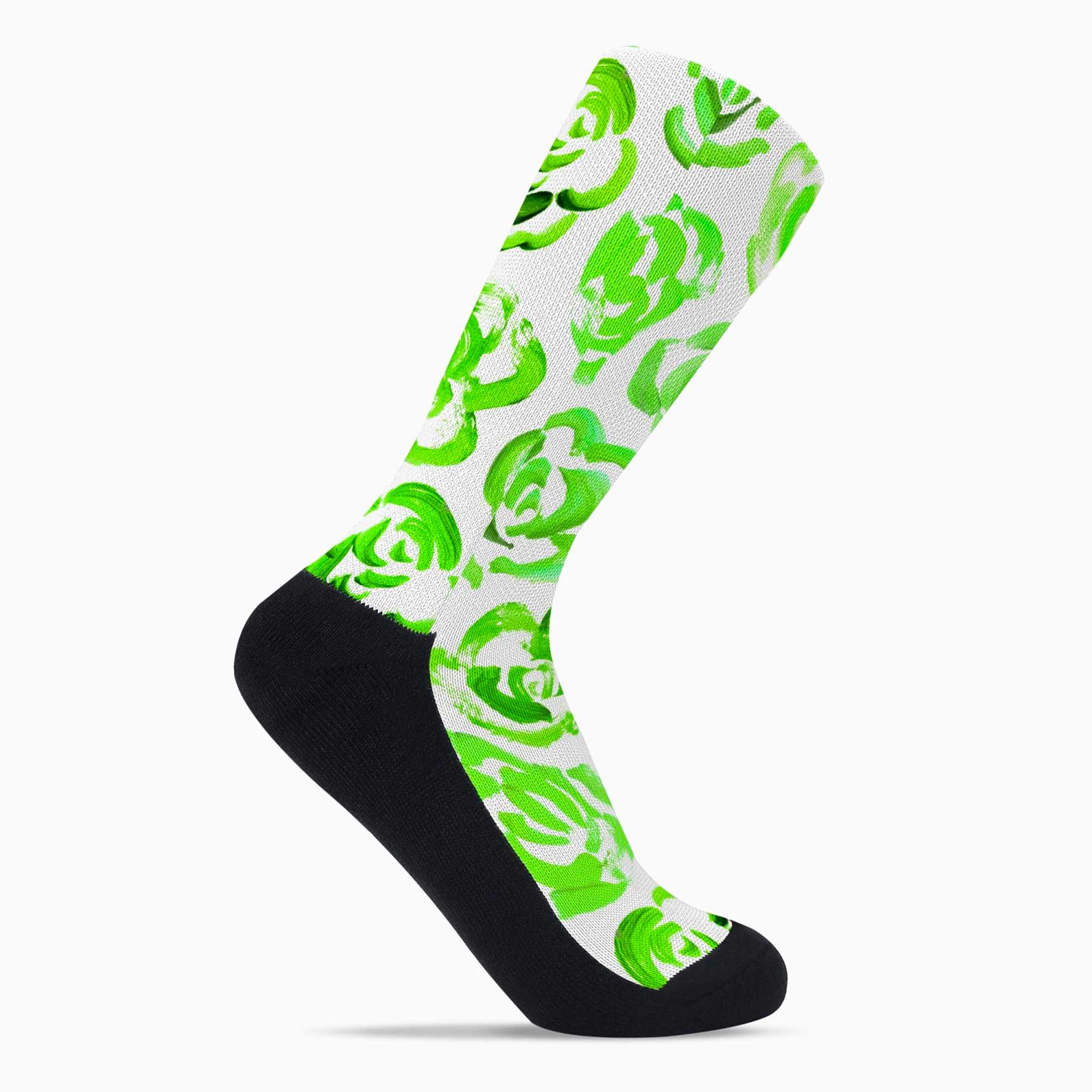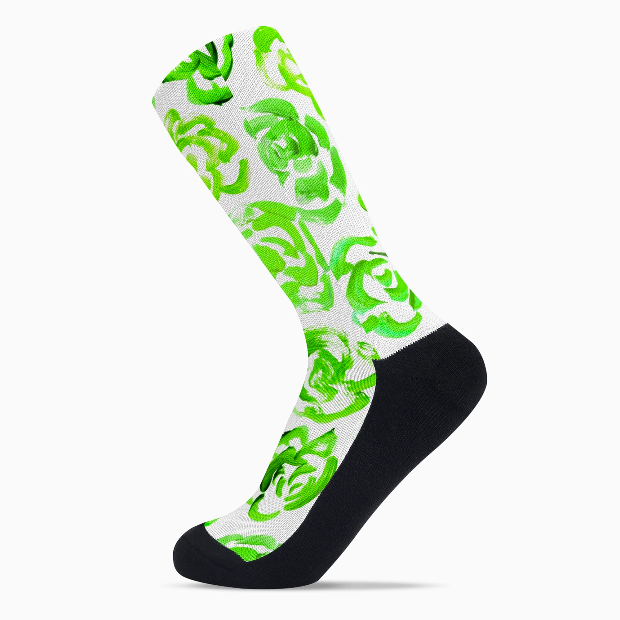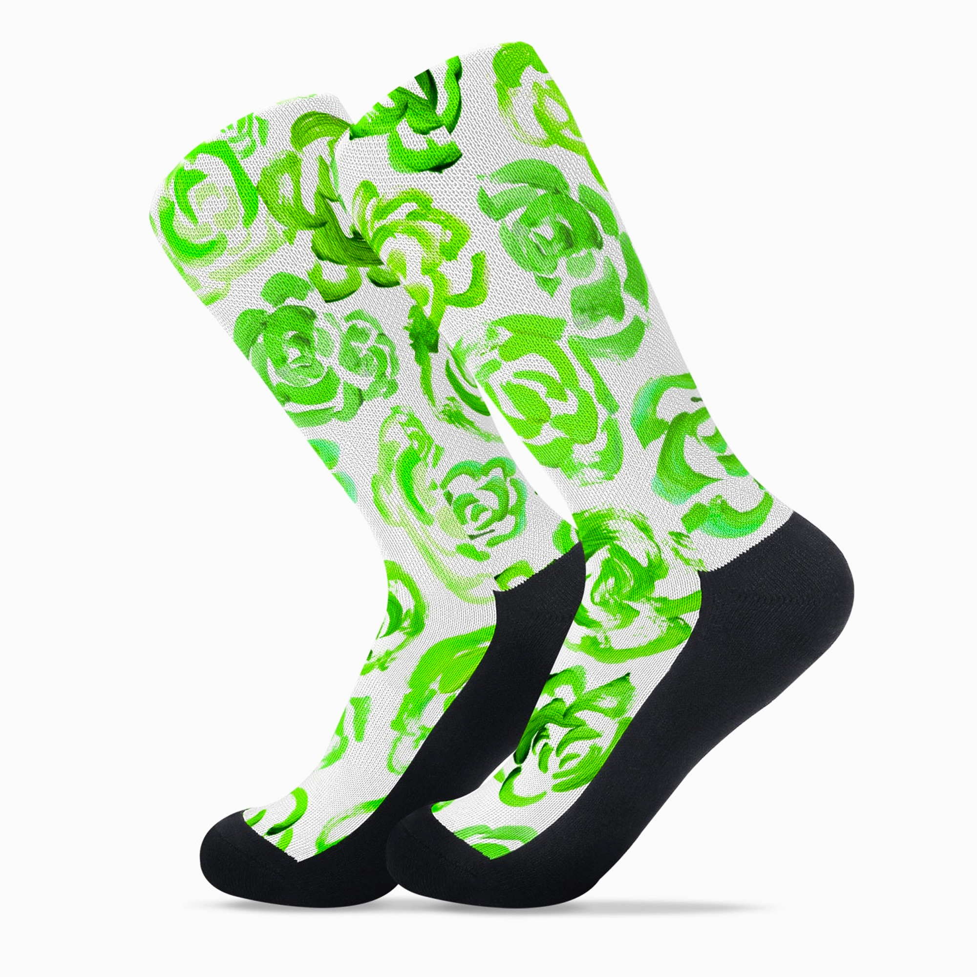 Add a bold botanical touch to your workout gear with these green flower blossom socks. Whether you are a marathon runner, a gym enthusiast, or just someone who loves cool socks, this pair blends high-performance engineering with a unique artsy aesthetic.
