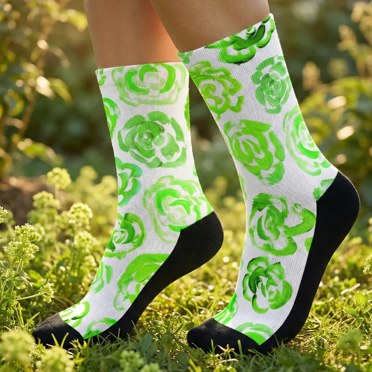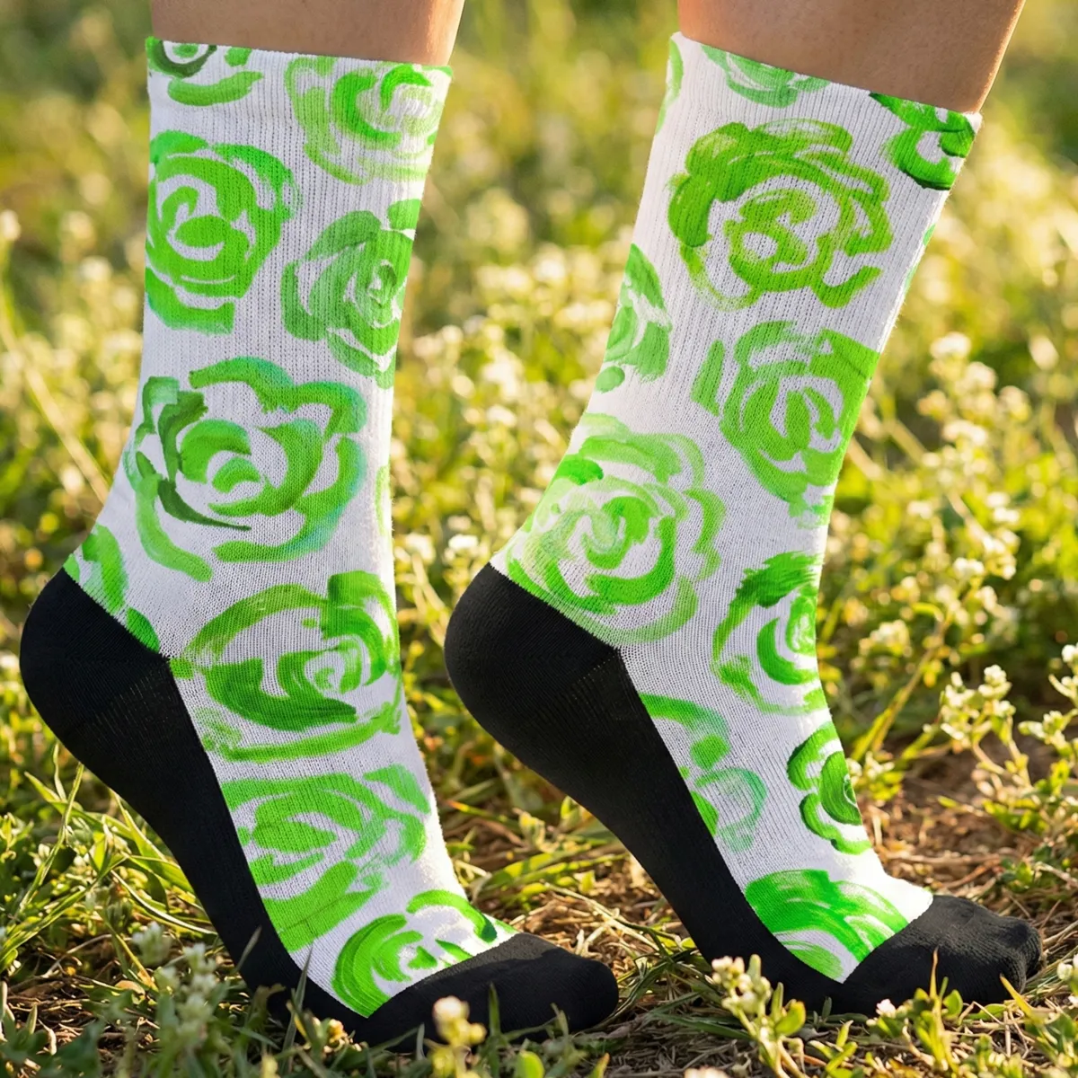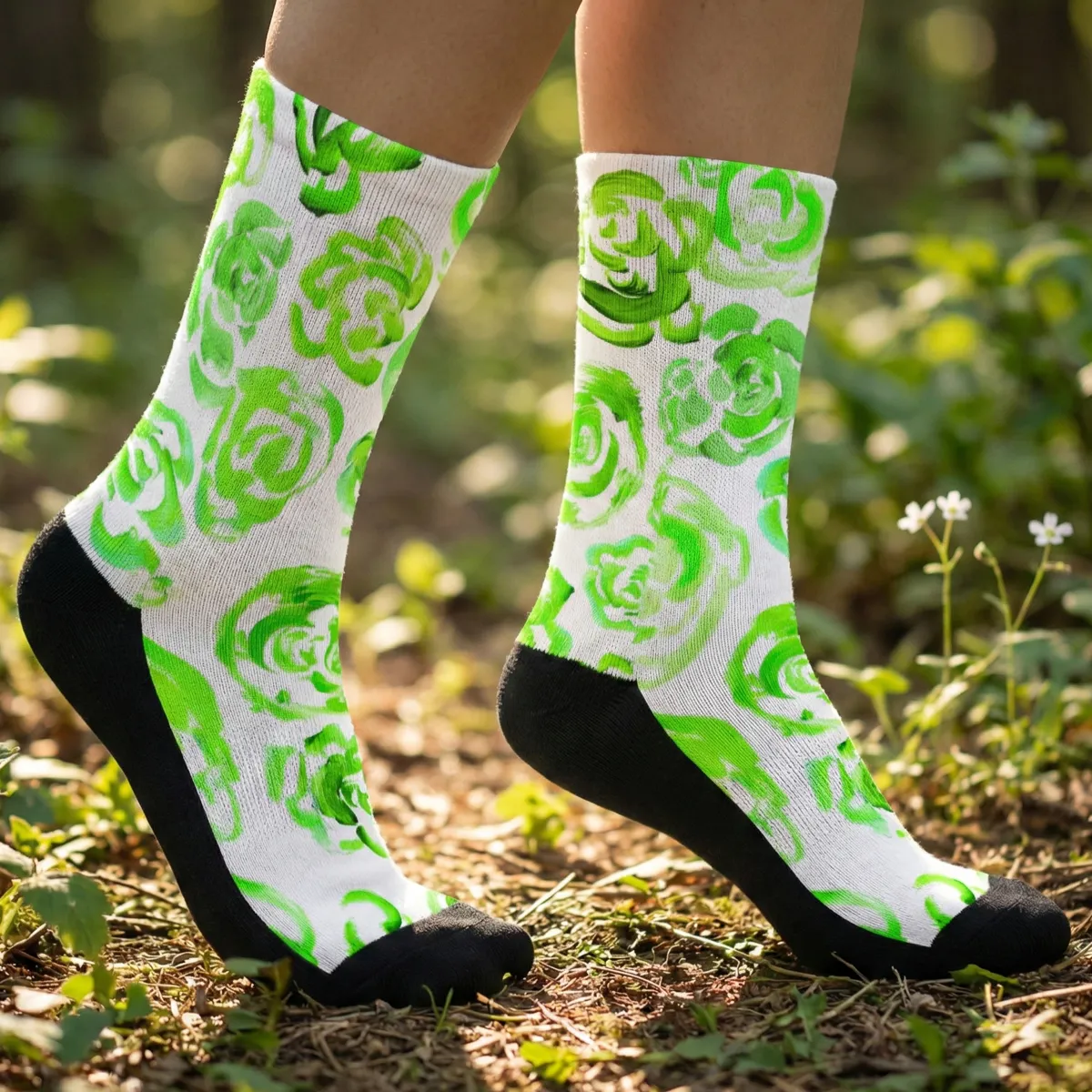 Add a bold botanical touch to your workout gear with these green flower blossom socks. Whether you are a marathon runner, a gym enthusiast, or just someone who loves cool socks, this pair blends high-performance engineering with a unique artsy aesthetic.