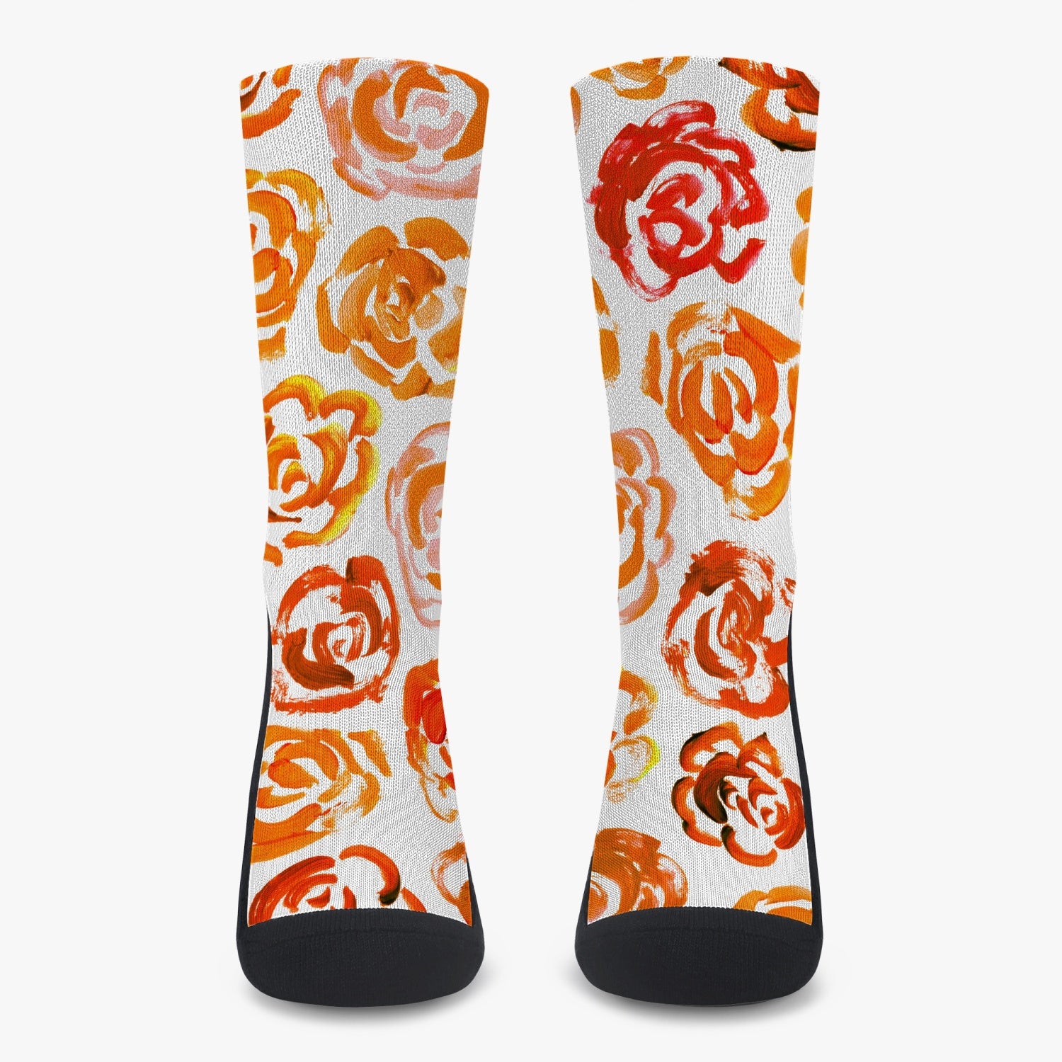 Floral Print Sports Socks - Orange Flower Blossoms - Reinforced for Running & Gym | Mia Mai Art