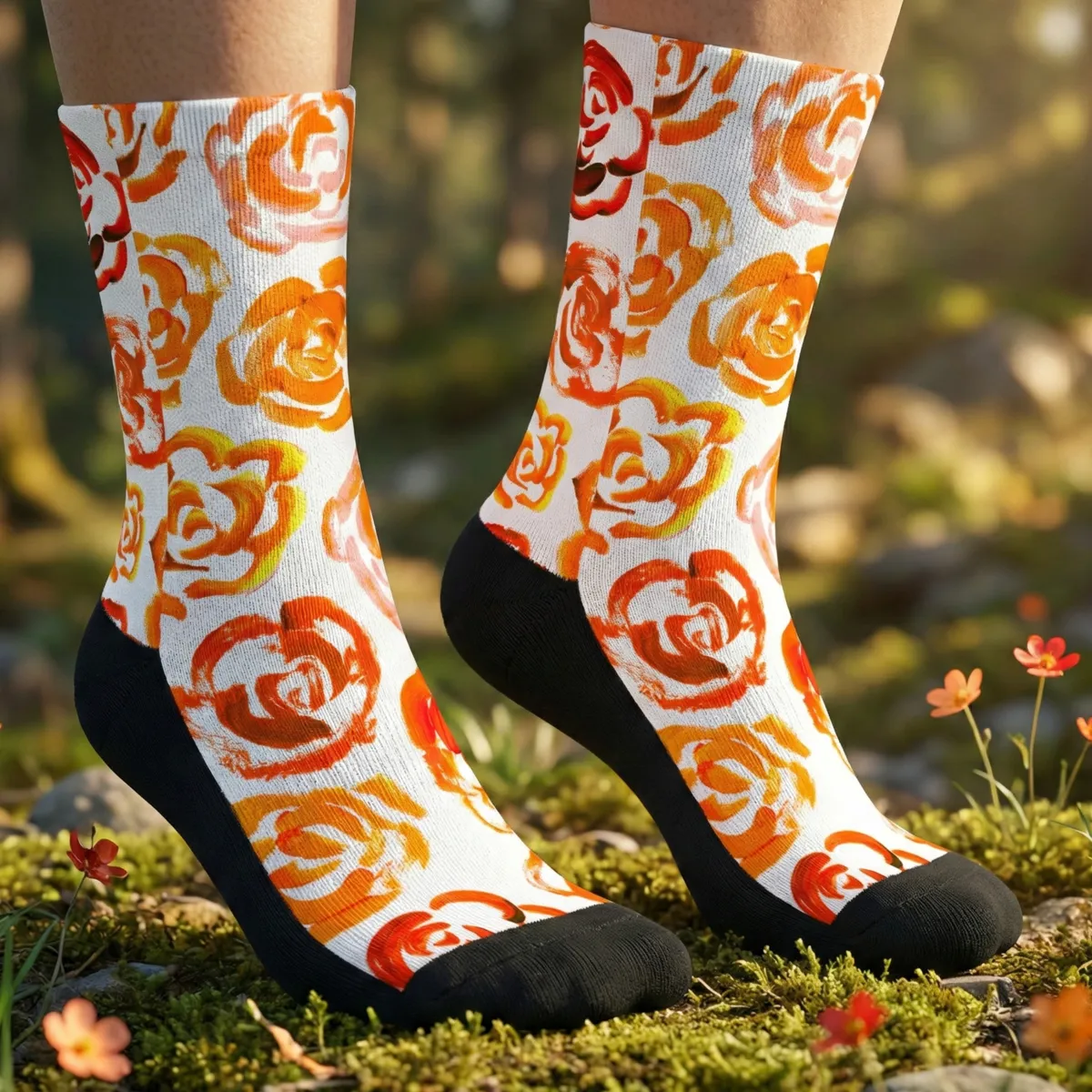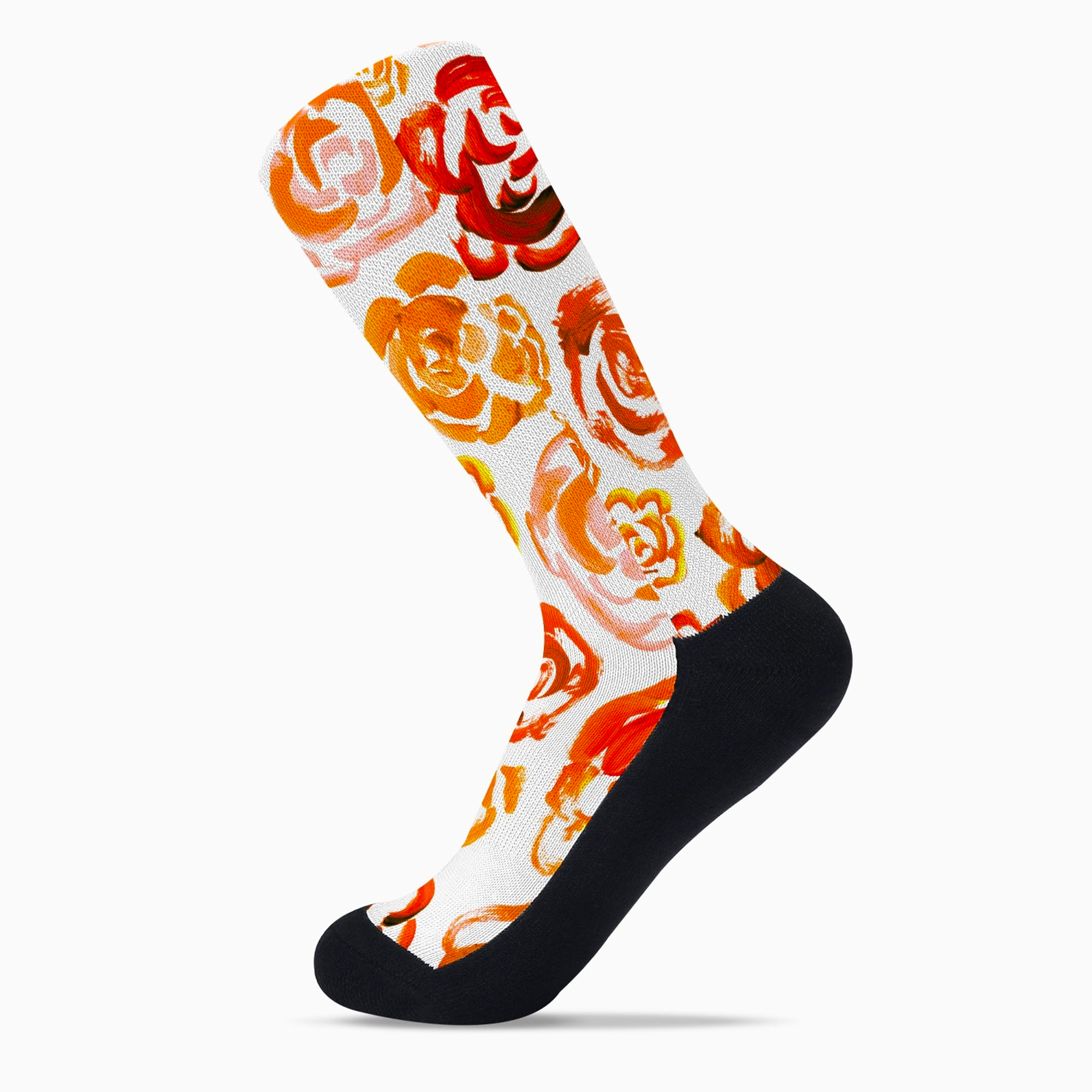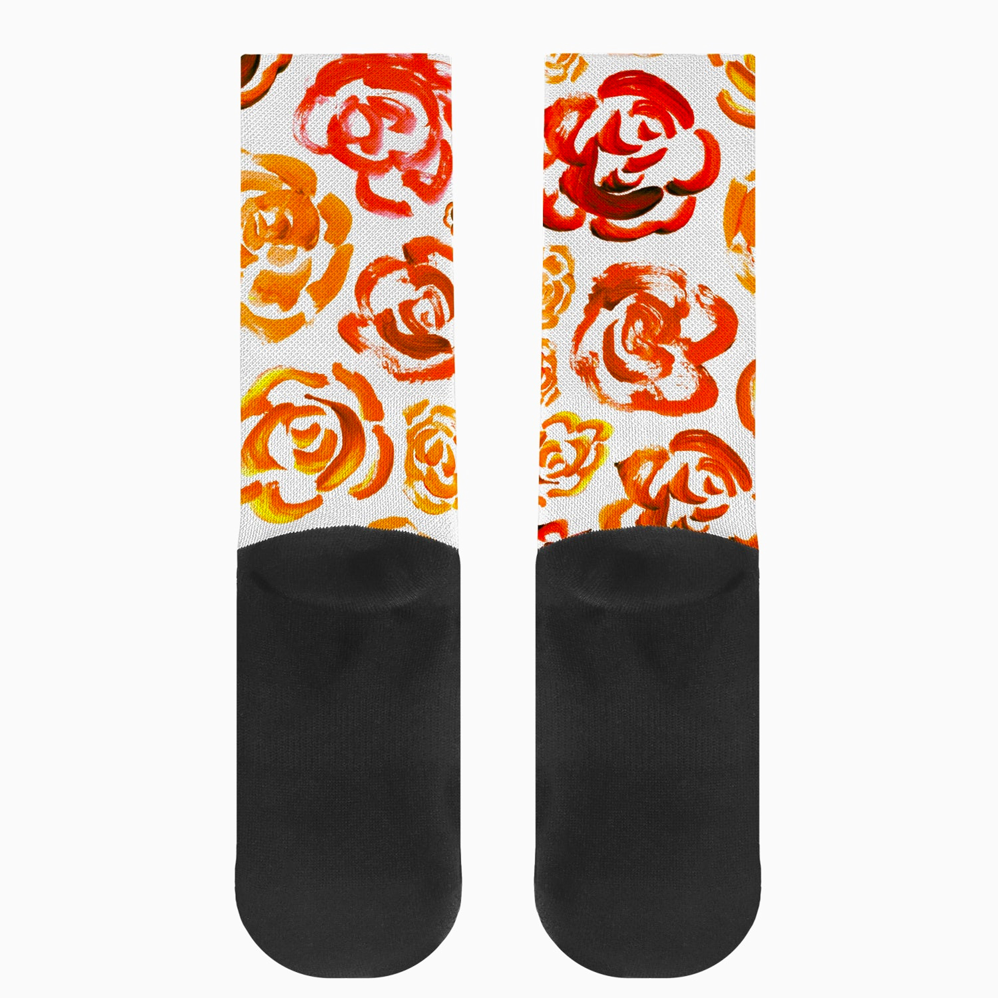 Add a bold botanical touch to your workout gear with these orange flower blossom socks. Whether you are a marathon runner, a gym enthusiast, or just someone who loves cool socks, this pair blends high-performance engineering with a unique artsy aesthetic.