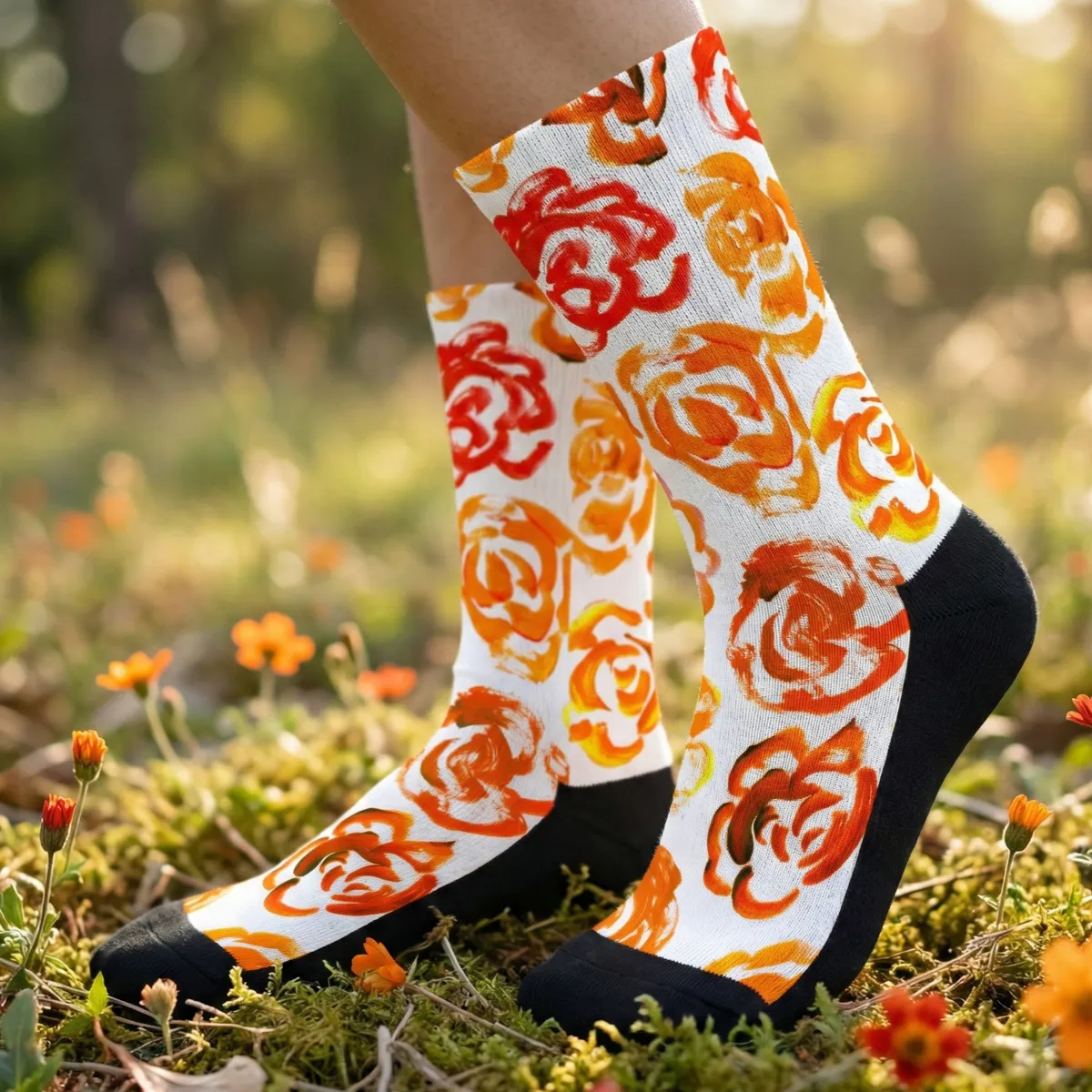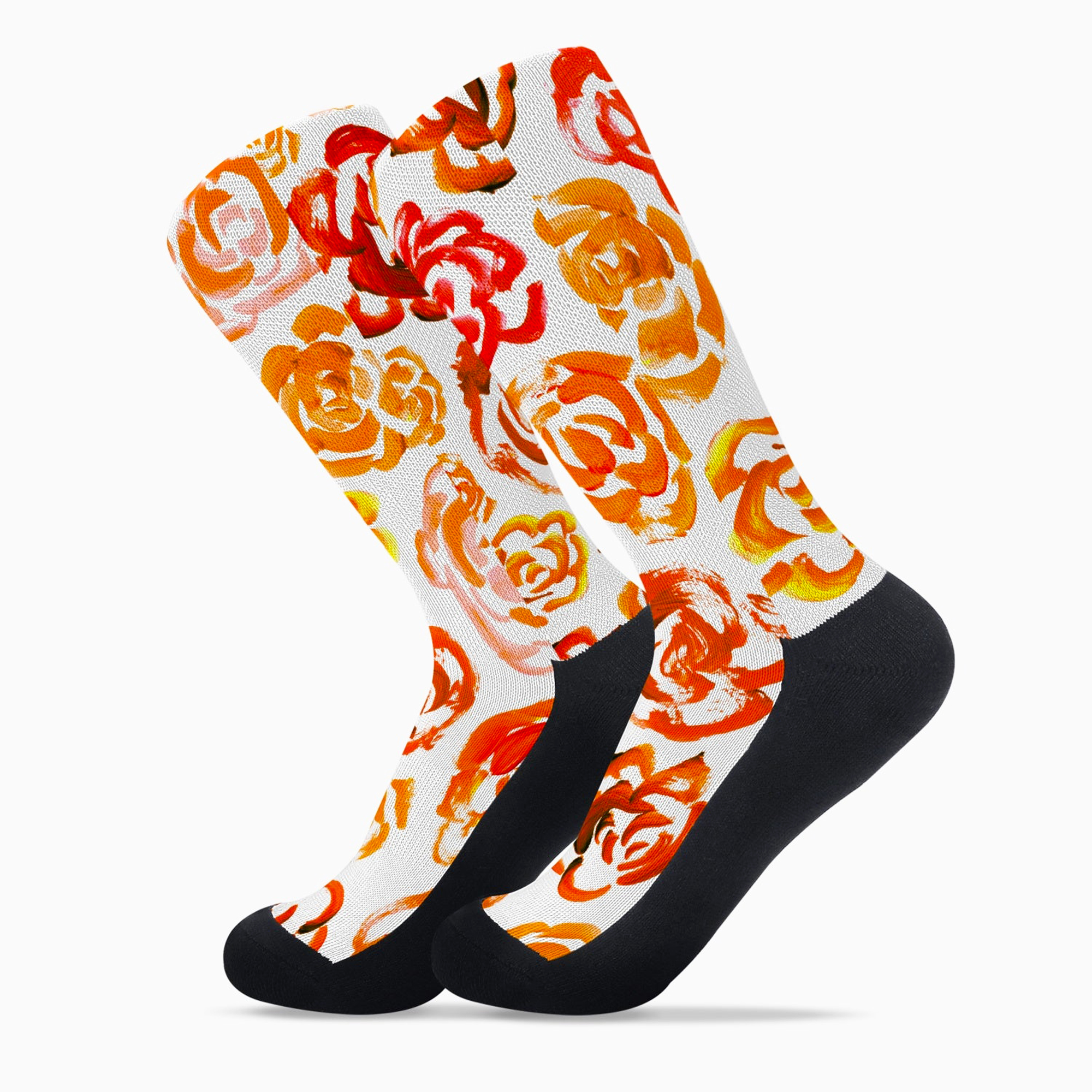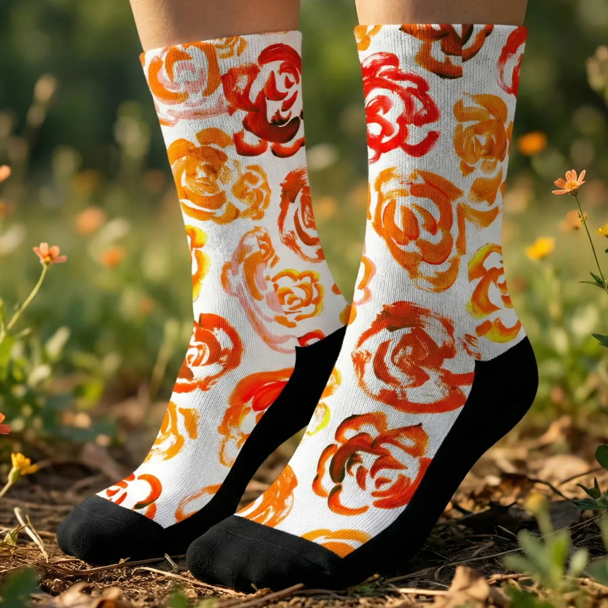 Add a bold botanical touch to your workout gear with these orange flower blossom socks. Whether you are a marathon runner, a gym enthusiast, or just someone who loves cool socks, this pair blends high-performance engineering with a unique artsy aesthetic.