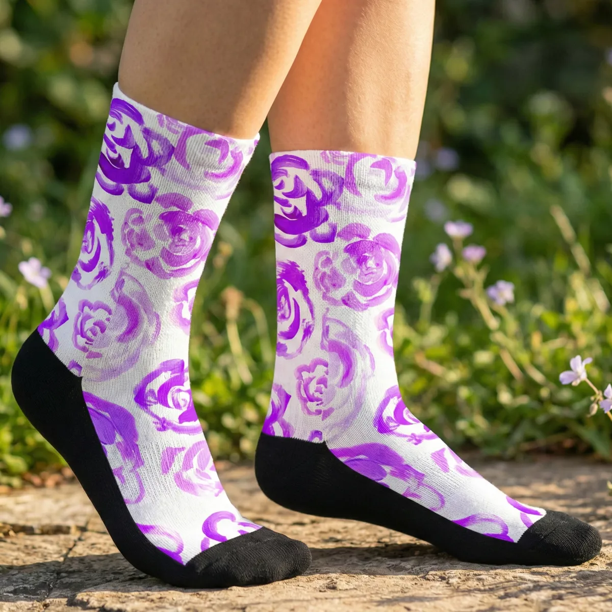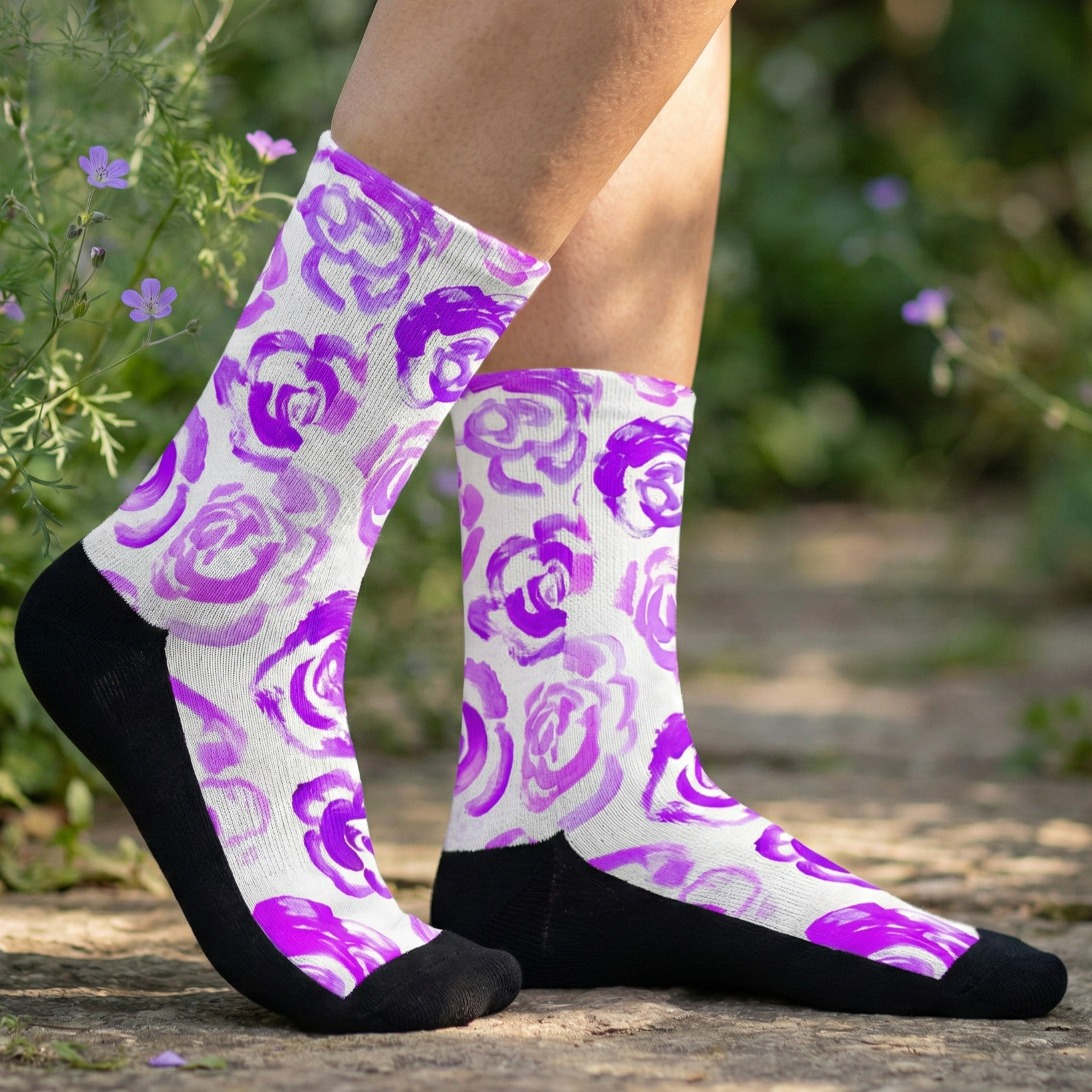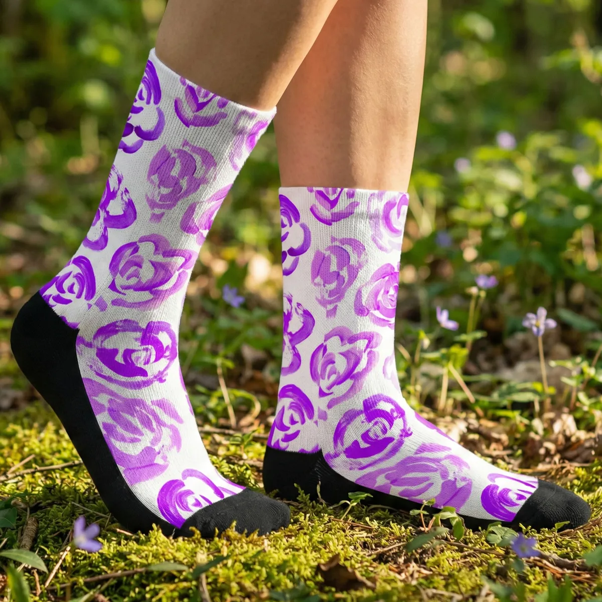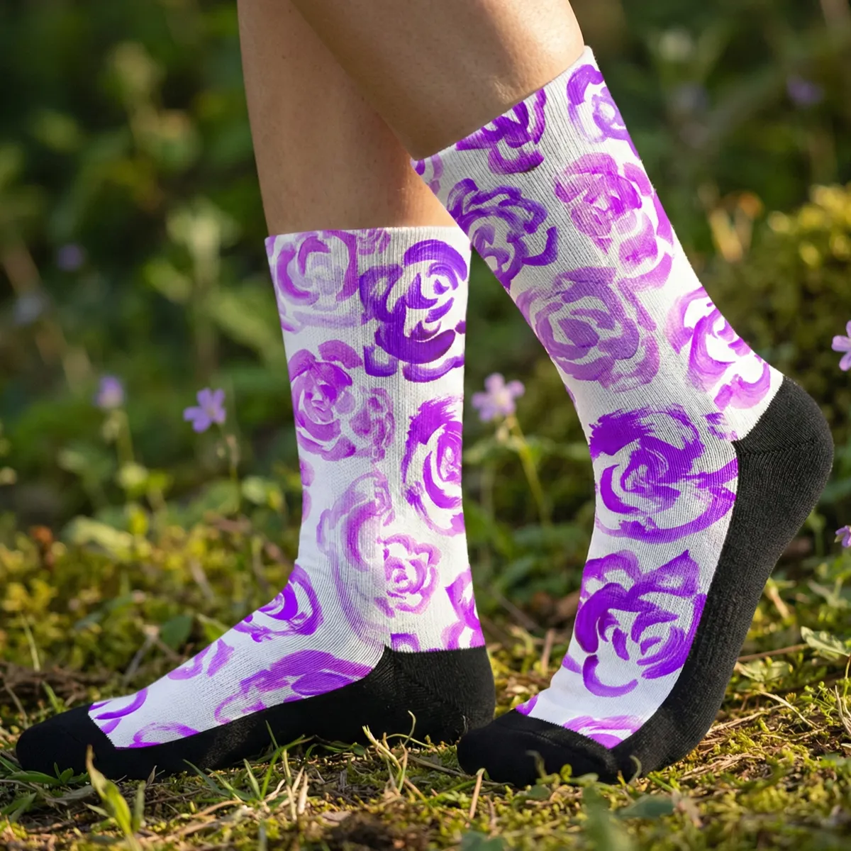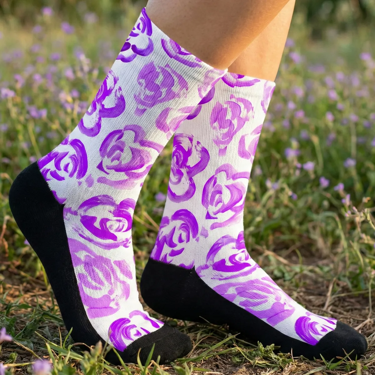 Add a bold botanical touch to your workout gear with these purple flower blossom socks. Whether you are a marathon runner, a gym enthusiast, or just someone who loves cool socks, this pair blends high-performance engineering with a unique artsy aesthetic.