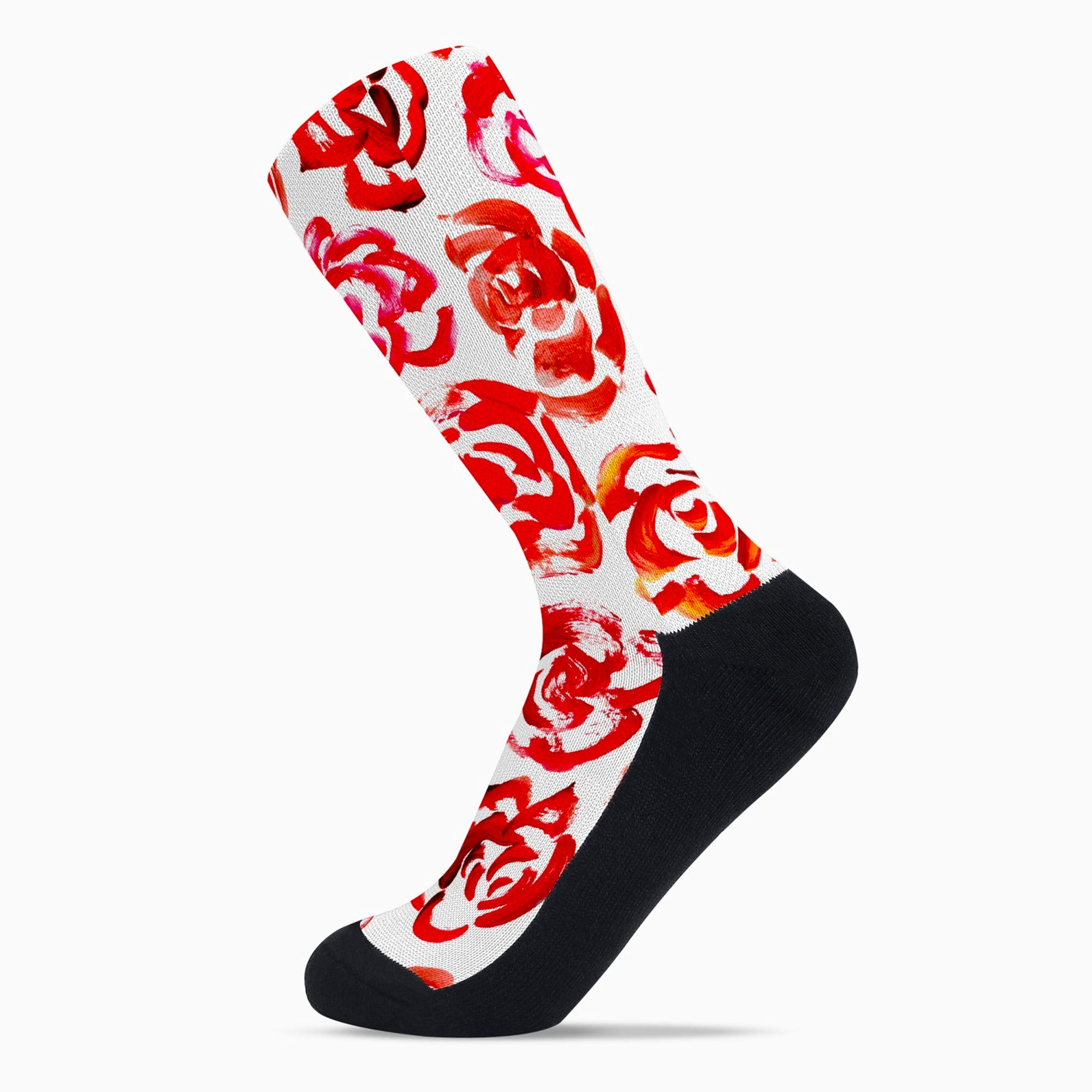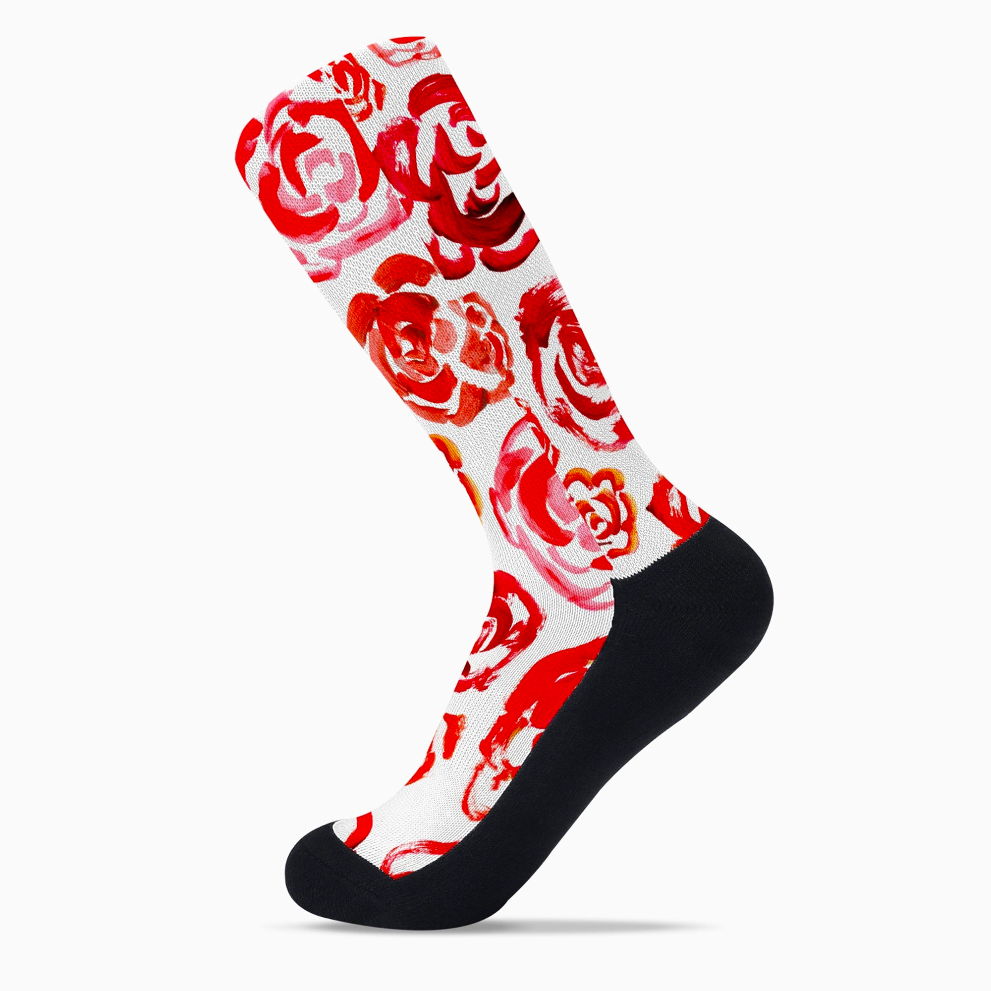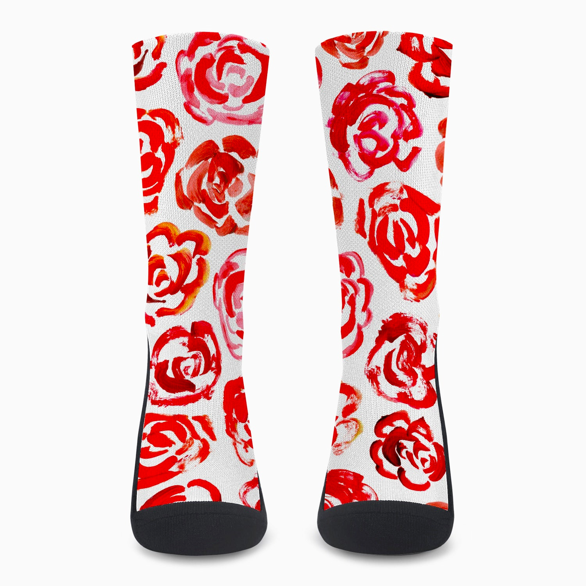 Add a bold botanical touch to your workout gear with these red flower blossom socks. Whether you are a marathon runner, a gym enthusiast, or just someone who loves cool socks, this pair blends high-performance engineering with a unique artsy aesthetic.