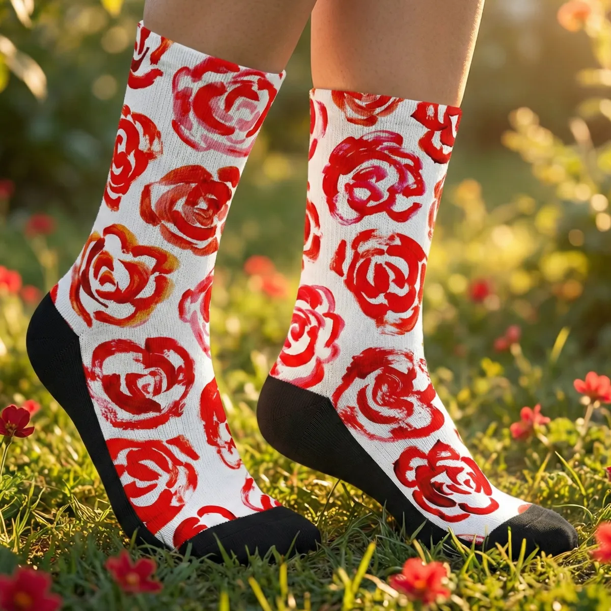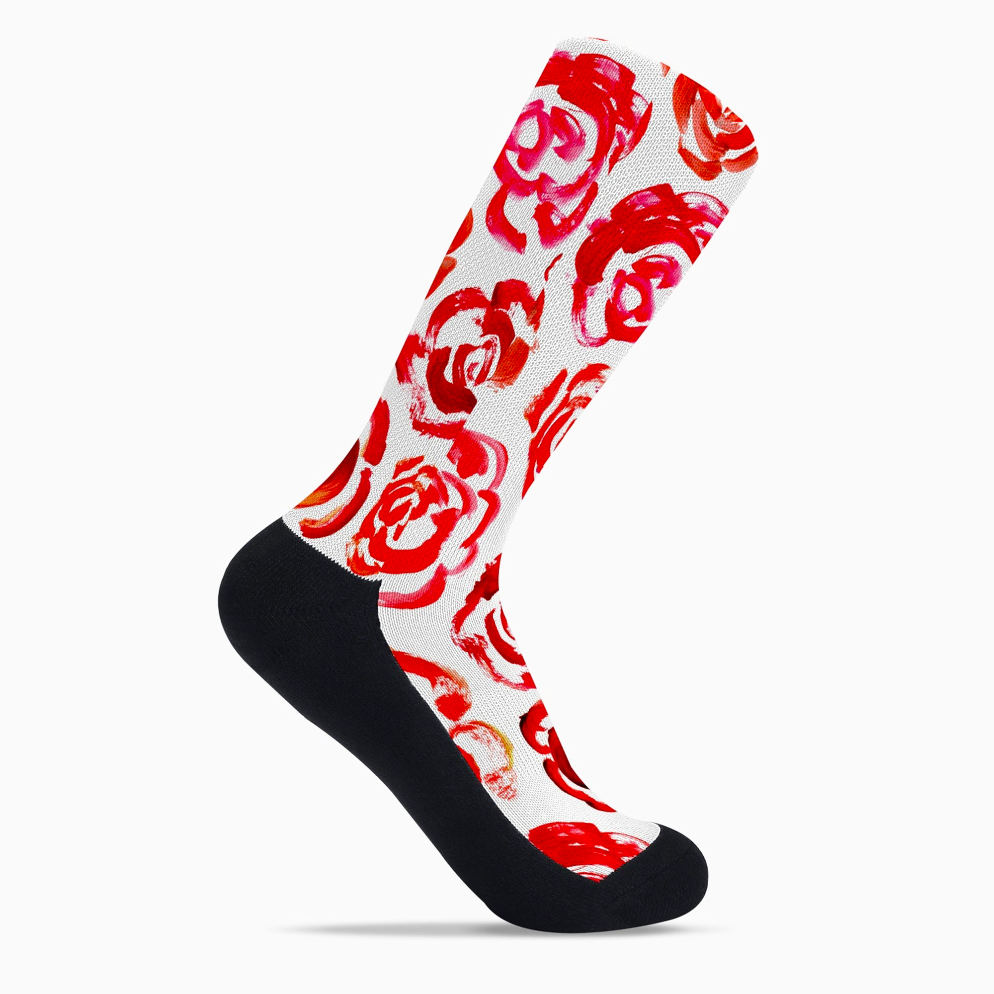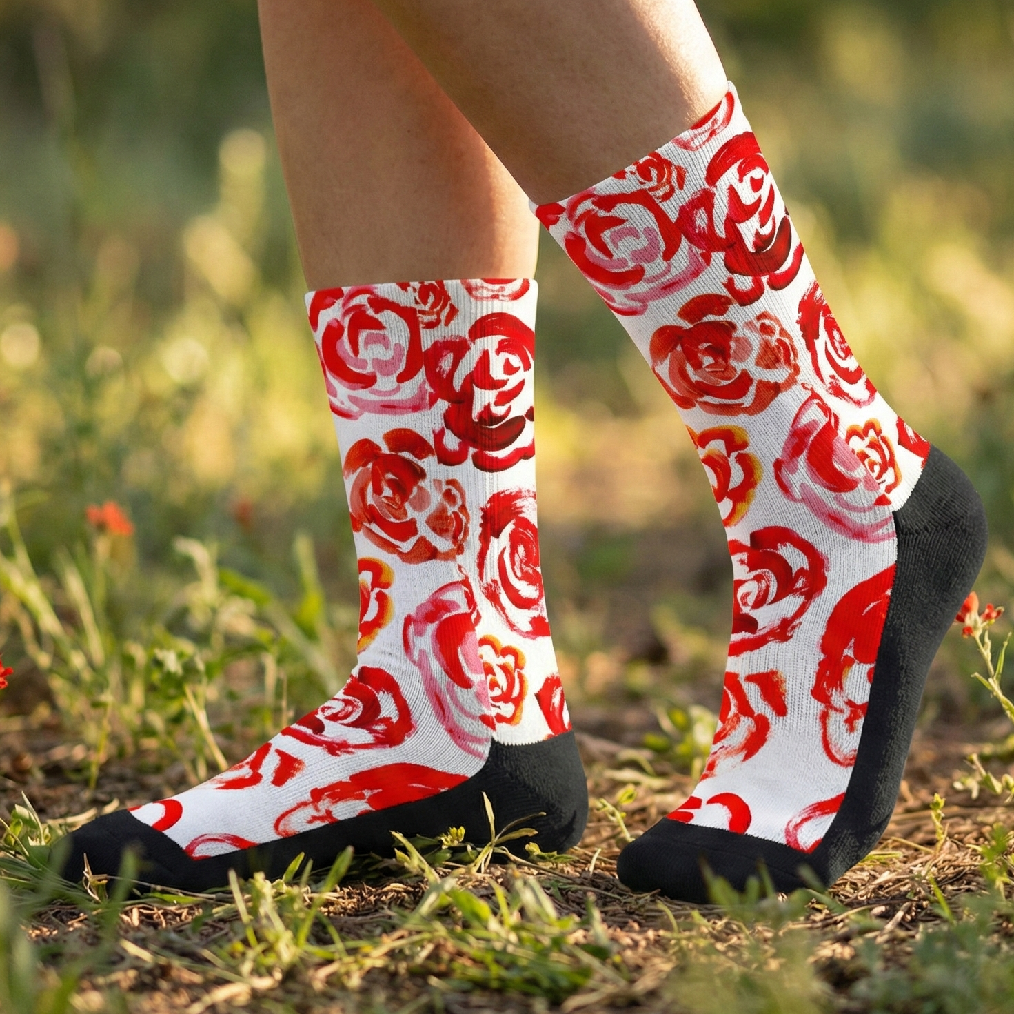 Add a bold botanical touch to your workout gear with these red flower blossom socks. Whether you are a marathon runner, a gym enthusiast, or just someone who loves cool socks, this pair blends high-performance engineering with a unique artsy aesthetic.