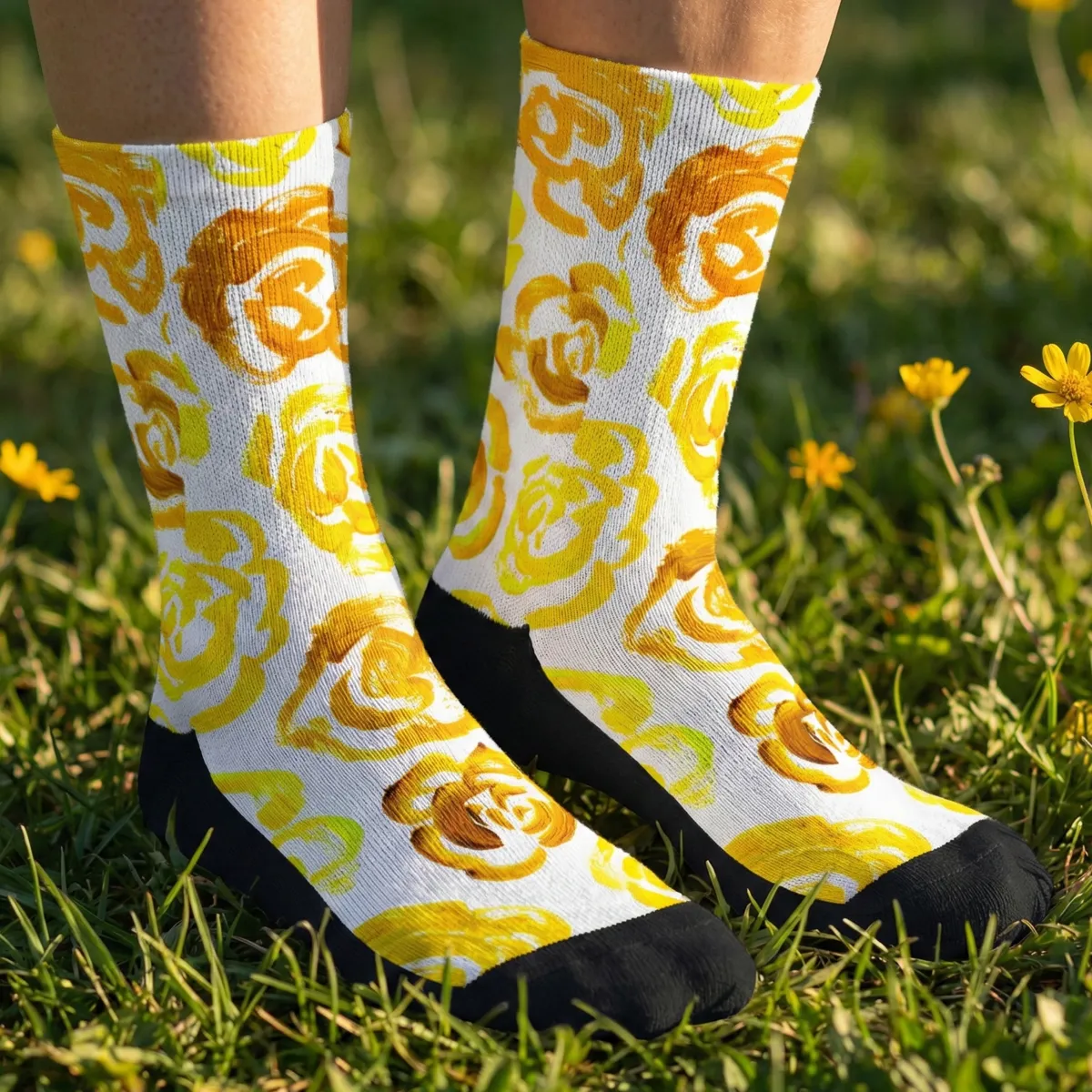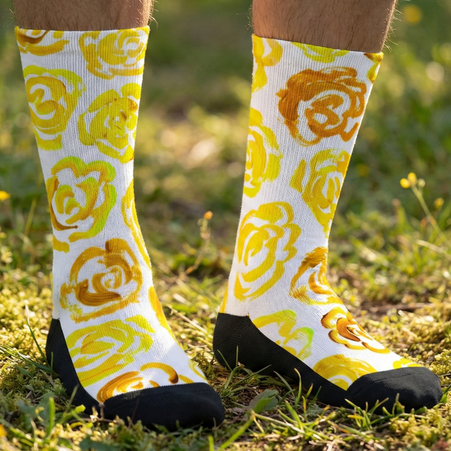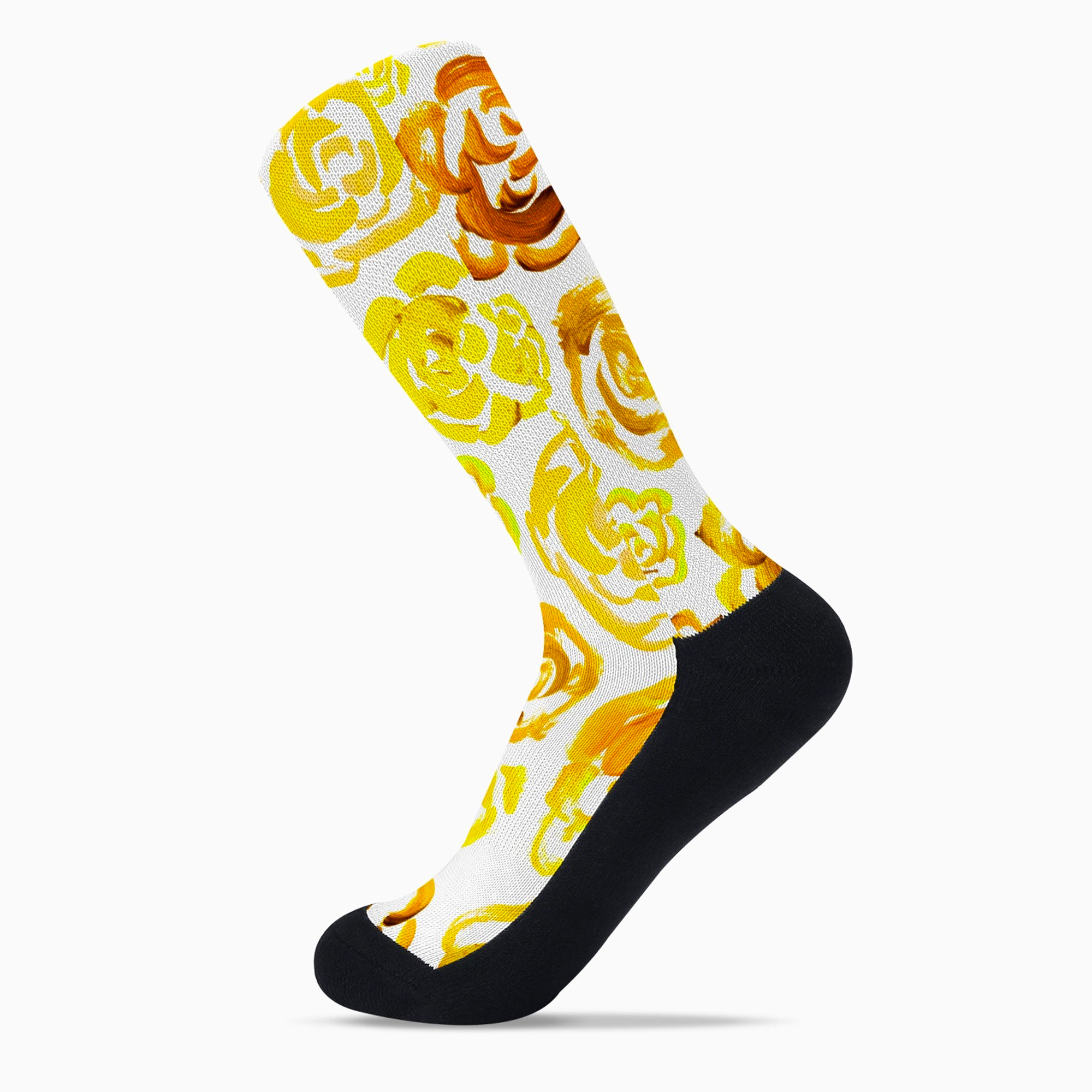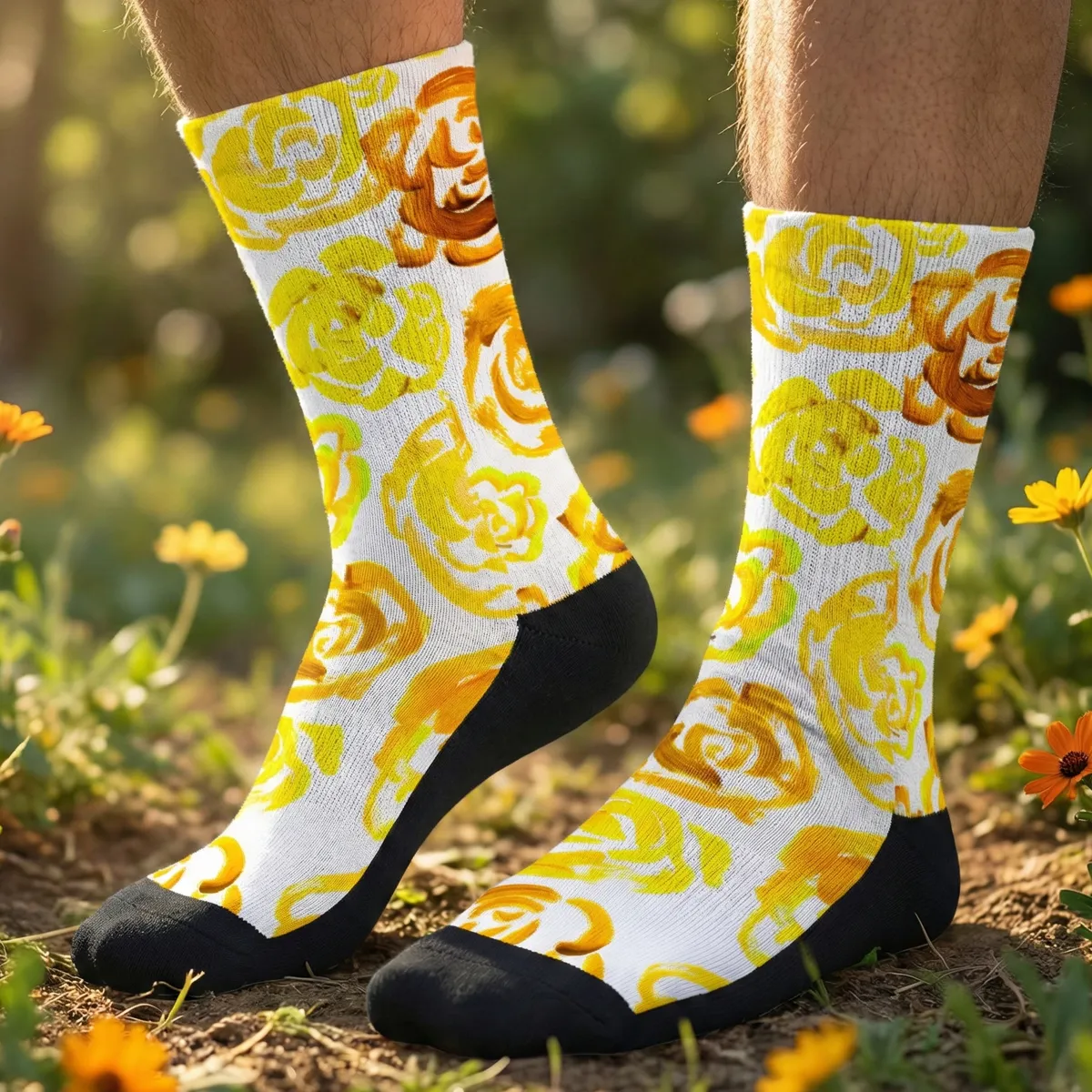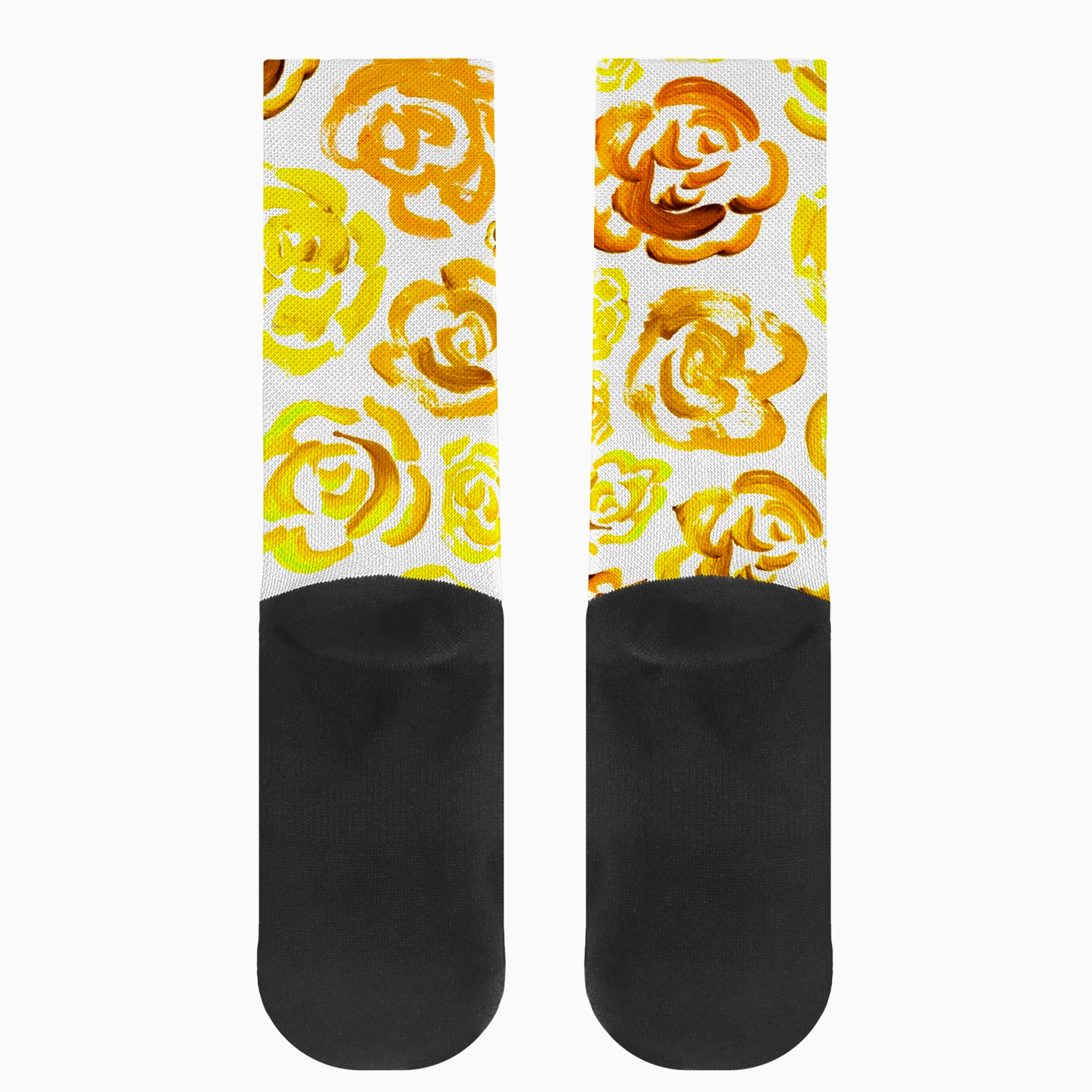 Add a bold botanical touch to your workout gear with these yellow flower blossom socks. Whether you are a marathon runner, a gym enthusiast, or just someone who loves cool socks, this pair blends high-performance engineering with a unique artsy aesthetic.