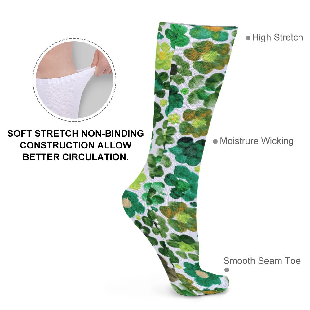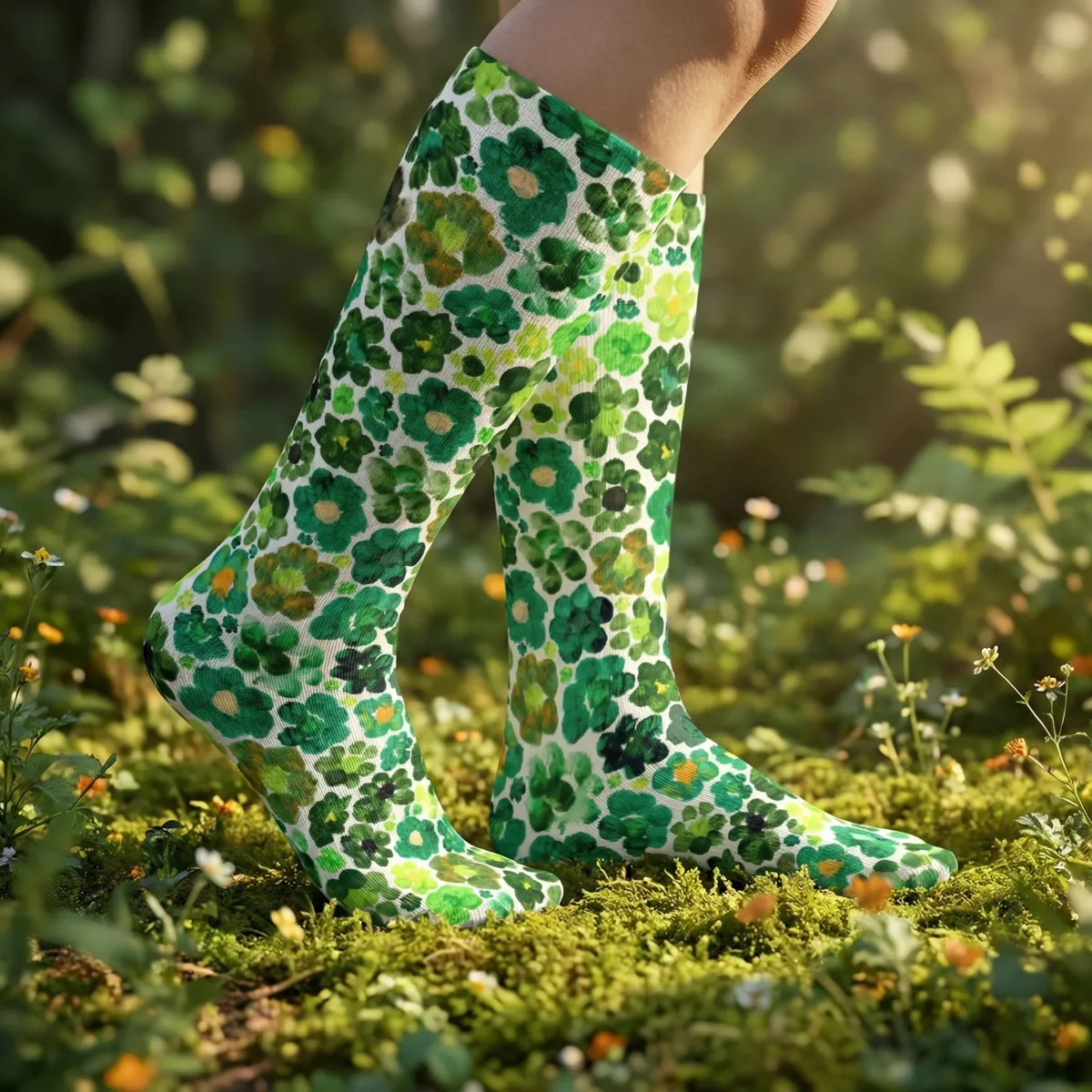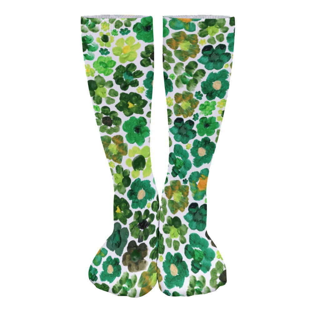 Green Flower Blossom Stockings | Unisex Floral Print Flower Socks | Printed from Original Painting