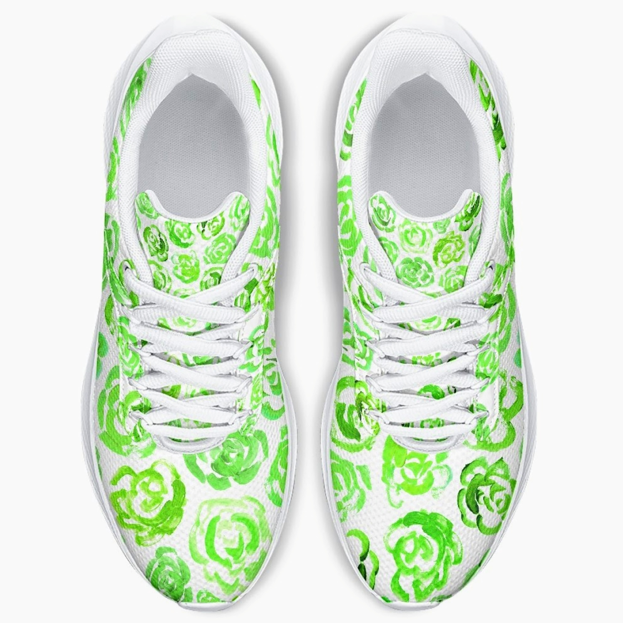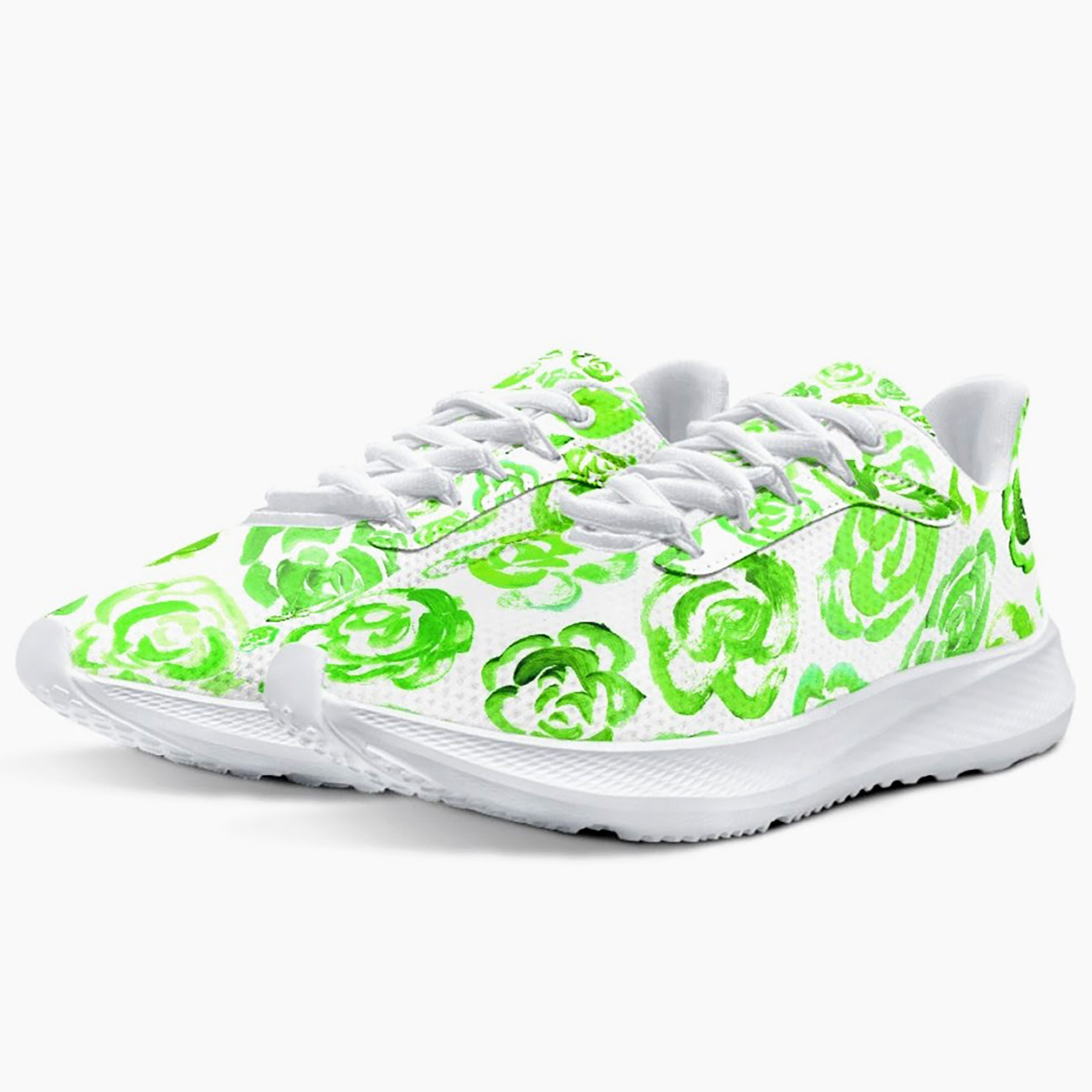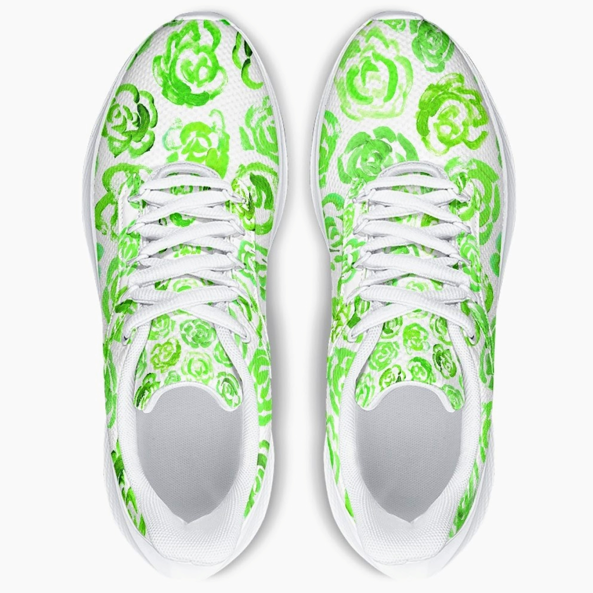 Unisex running shoes with light green flower blossoms. Women's & men's lightweight sports shoes.