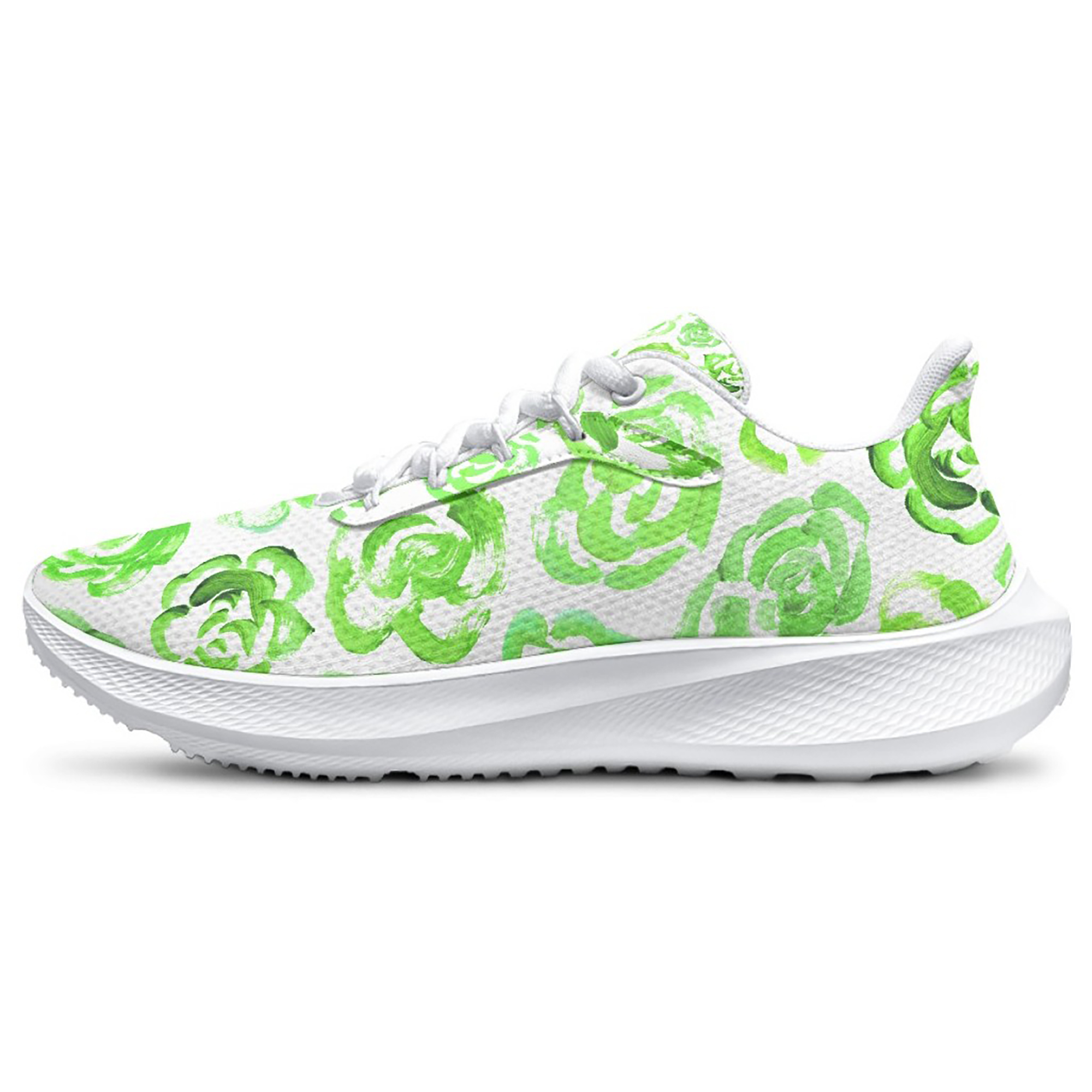 Green Flower Shoes | Unisex Running Shoes with Light Green Flower Blossoms | Floral Pattern Sneakers