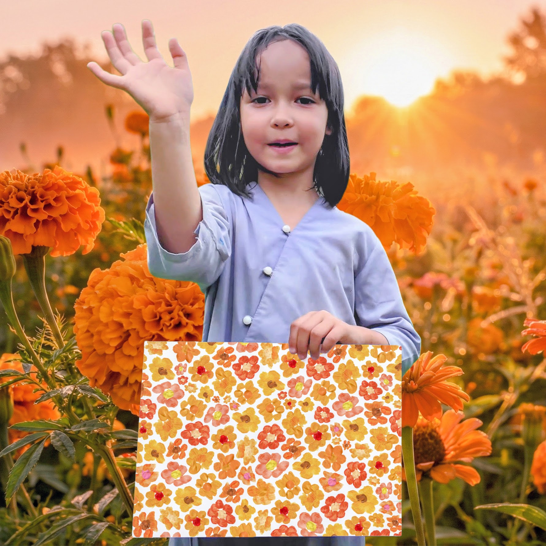 This beautiful orange flower pattern is not just a design—it is a story of creativity and innocence.