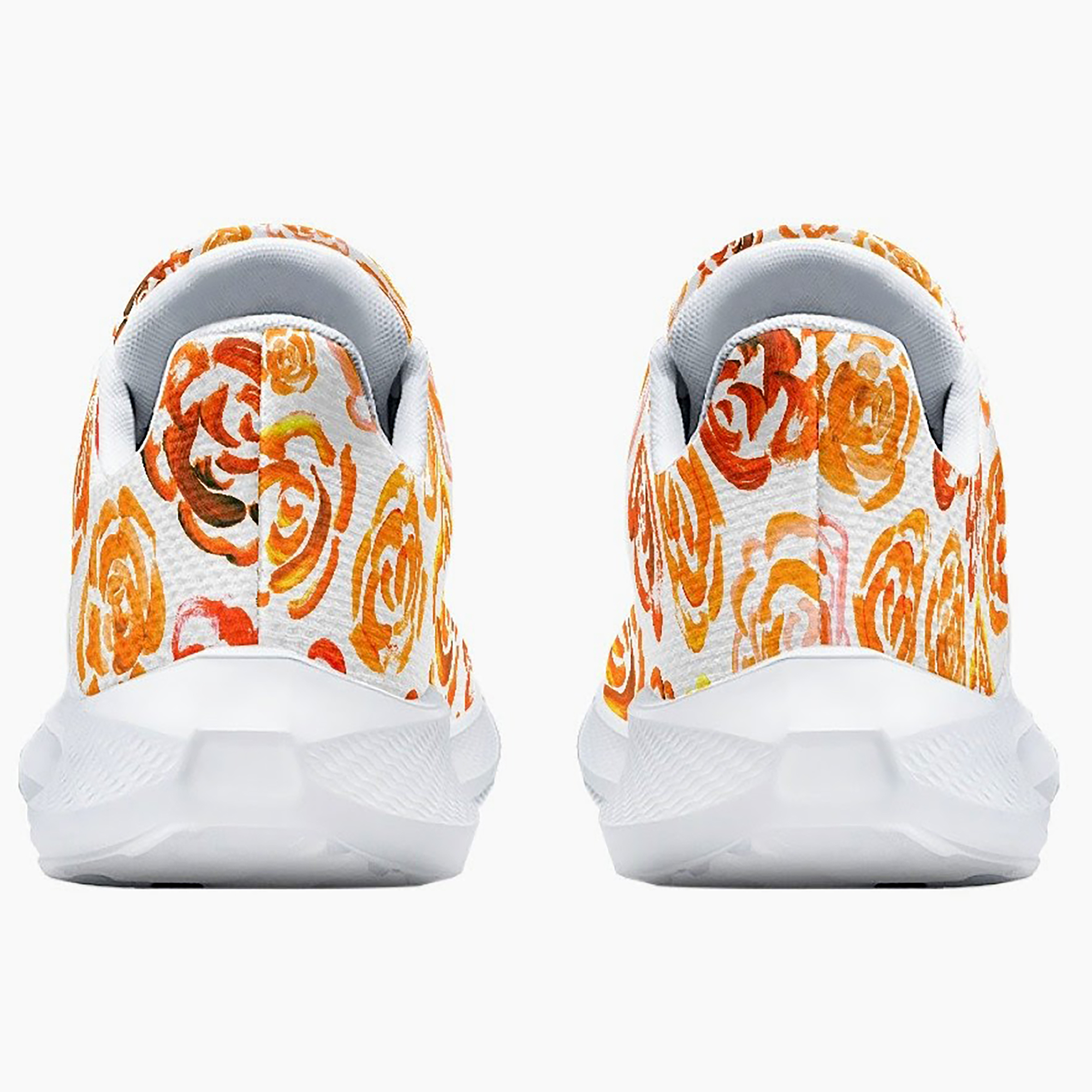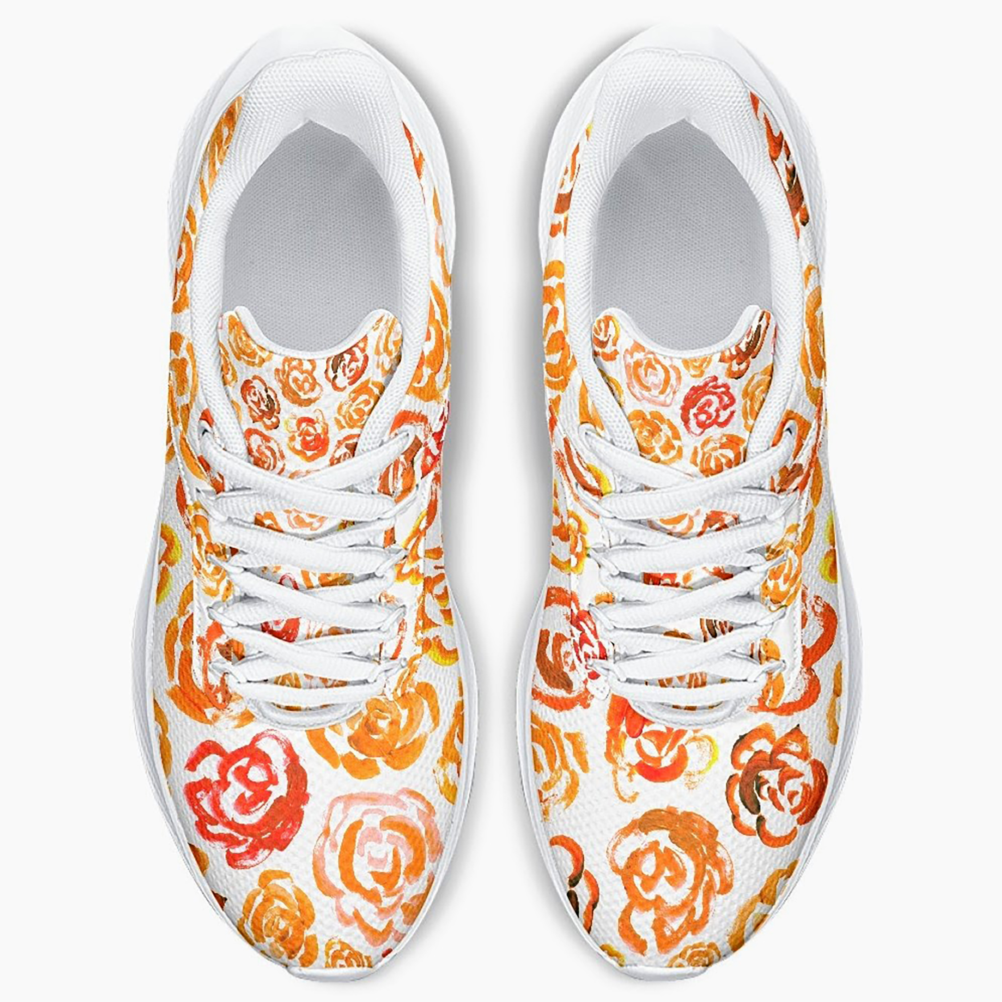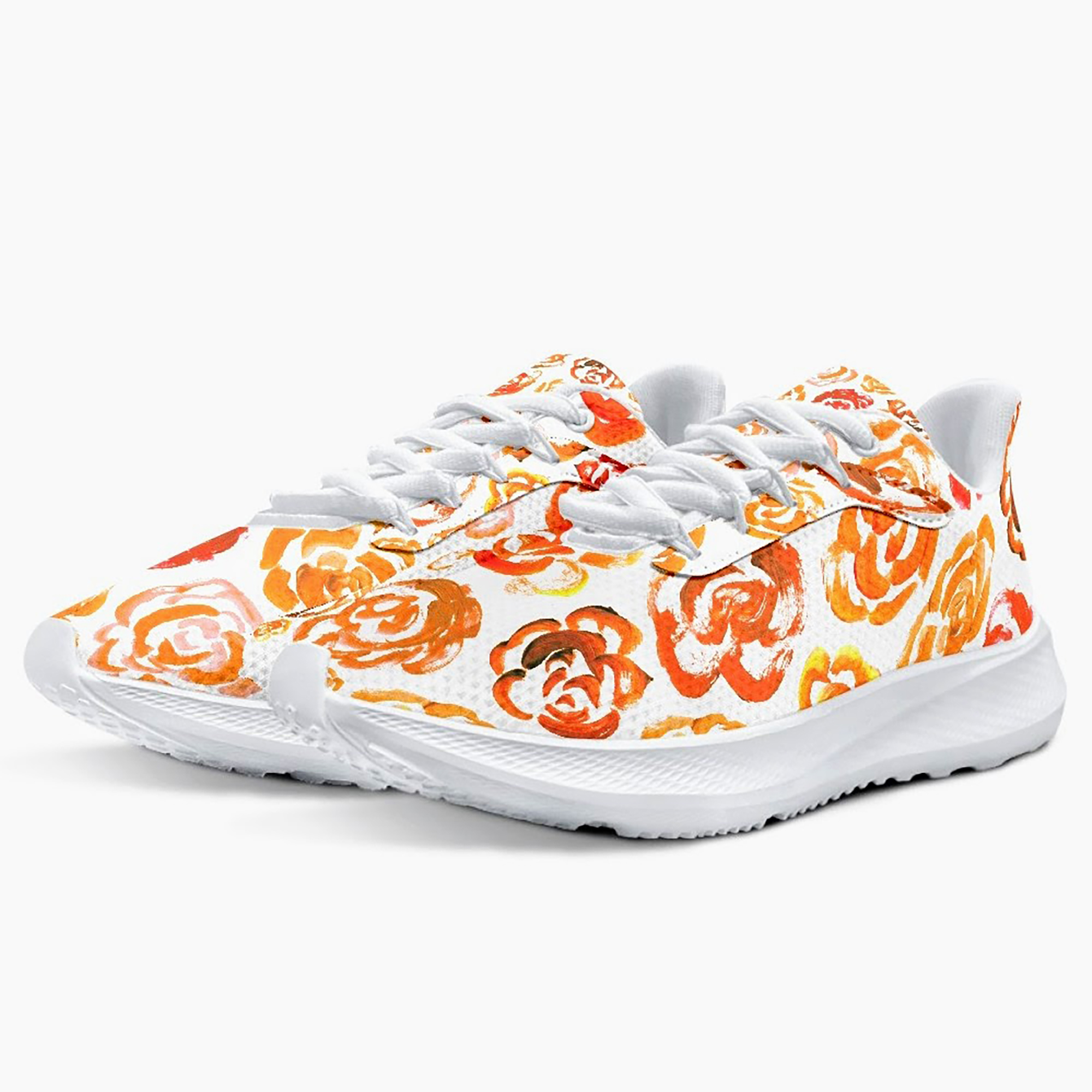 Unisex running shoes with orange flower blossoms. Women's & men's lightweight sports shoes.