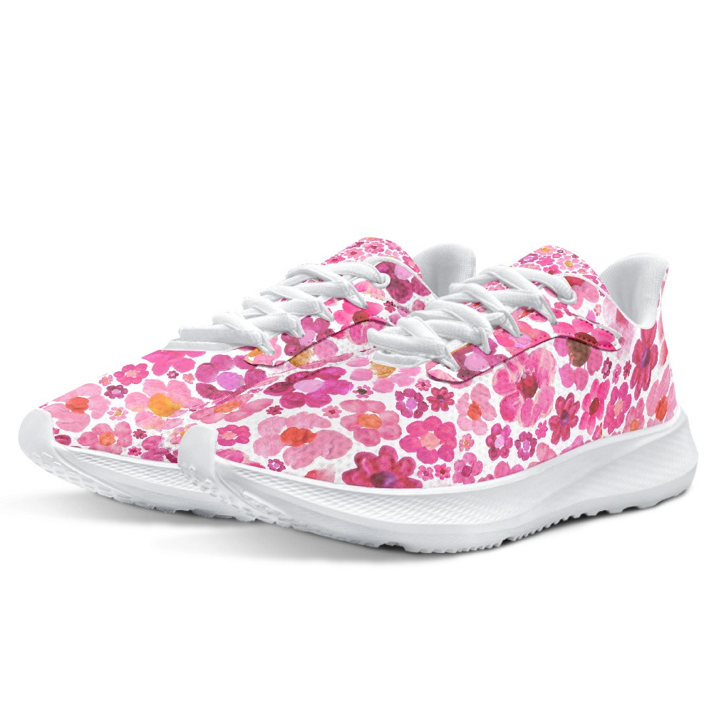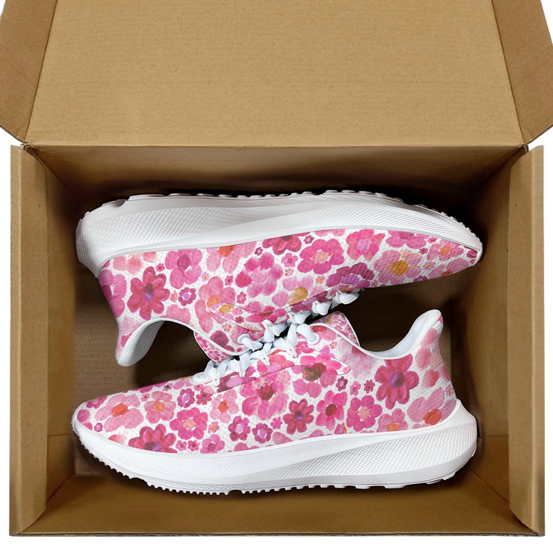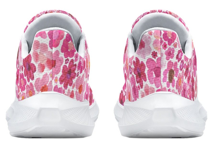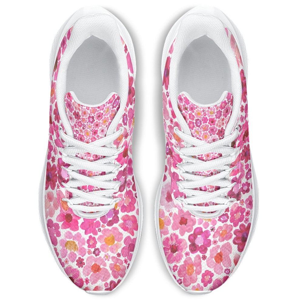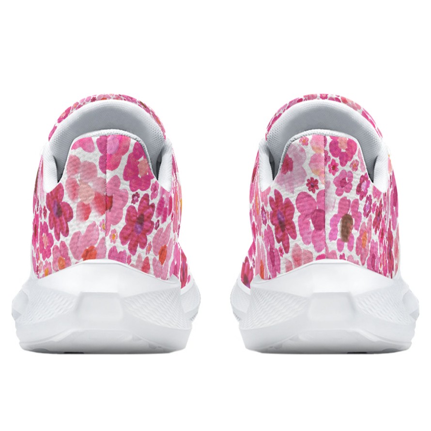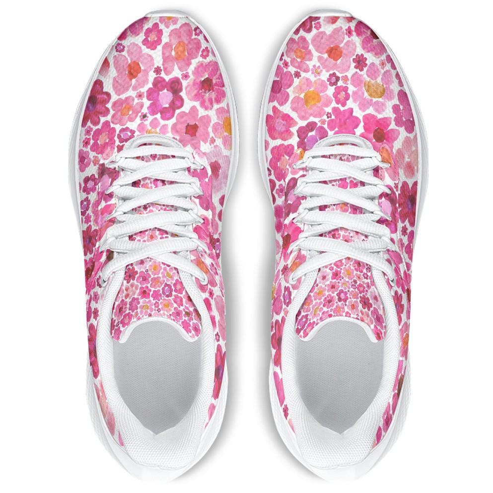 Pink Floral Running Shoes (Unisex) with Painted Pink Flower Blossoms | Botanical Art Sneakers