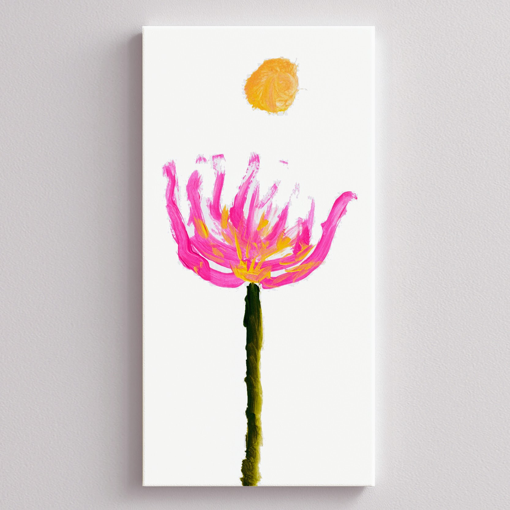 Pink Lotus Flower and Full Moon Canvas Print Framed or Unframed  5 SizesFREE INTERNATIONAL SHIPPING   The “Pink Lotus Flower and Full Moon”   is a beautiful painting created by young artist Mia Mai on December 29, 2022 , at just 3 years and 9 months old.