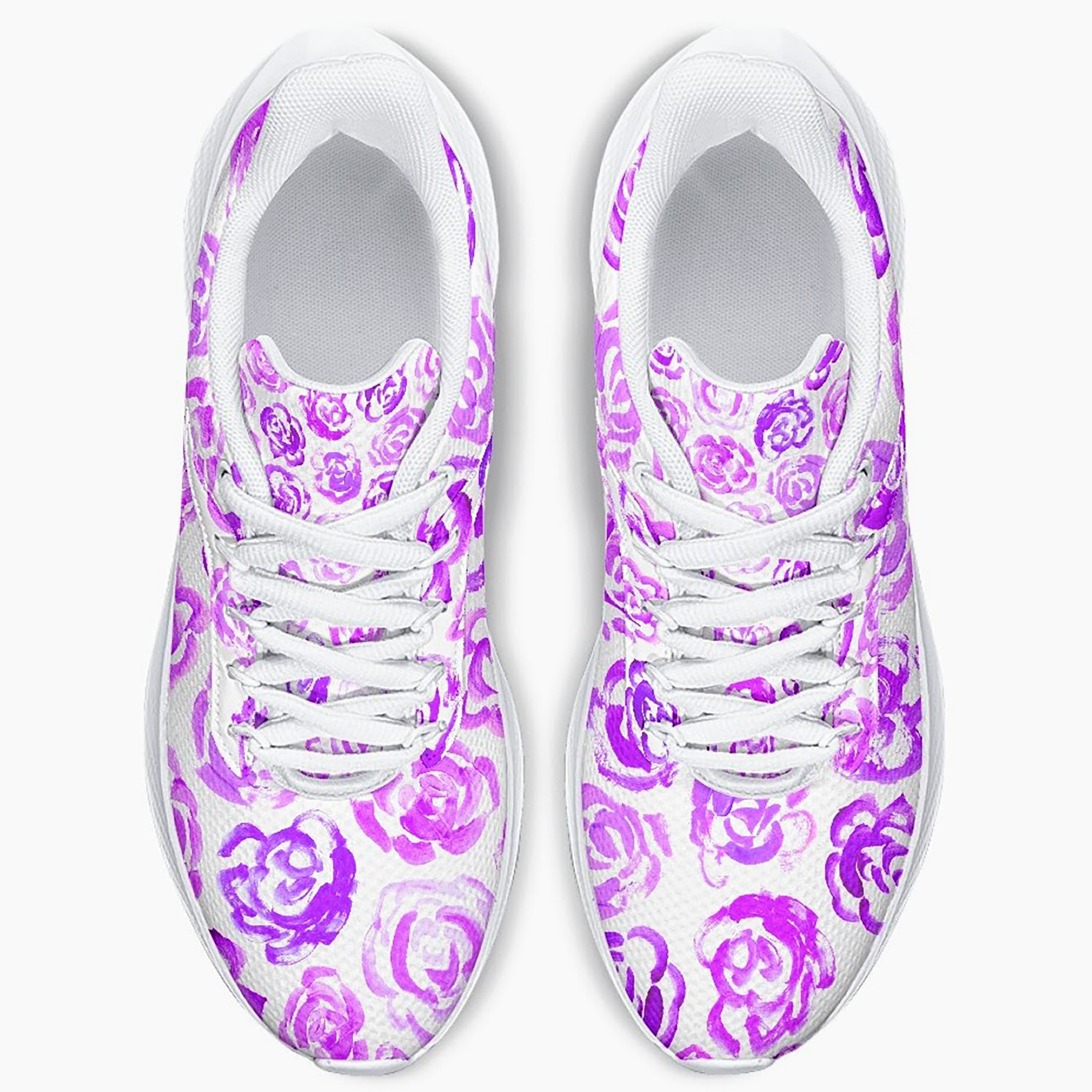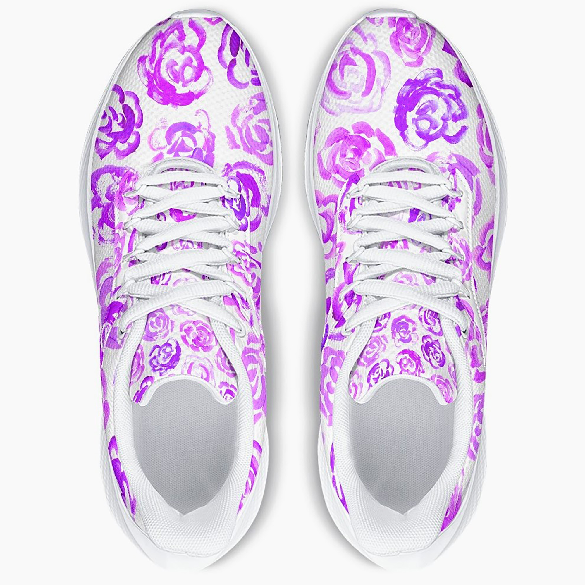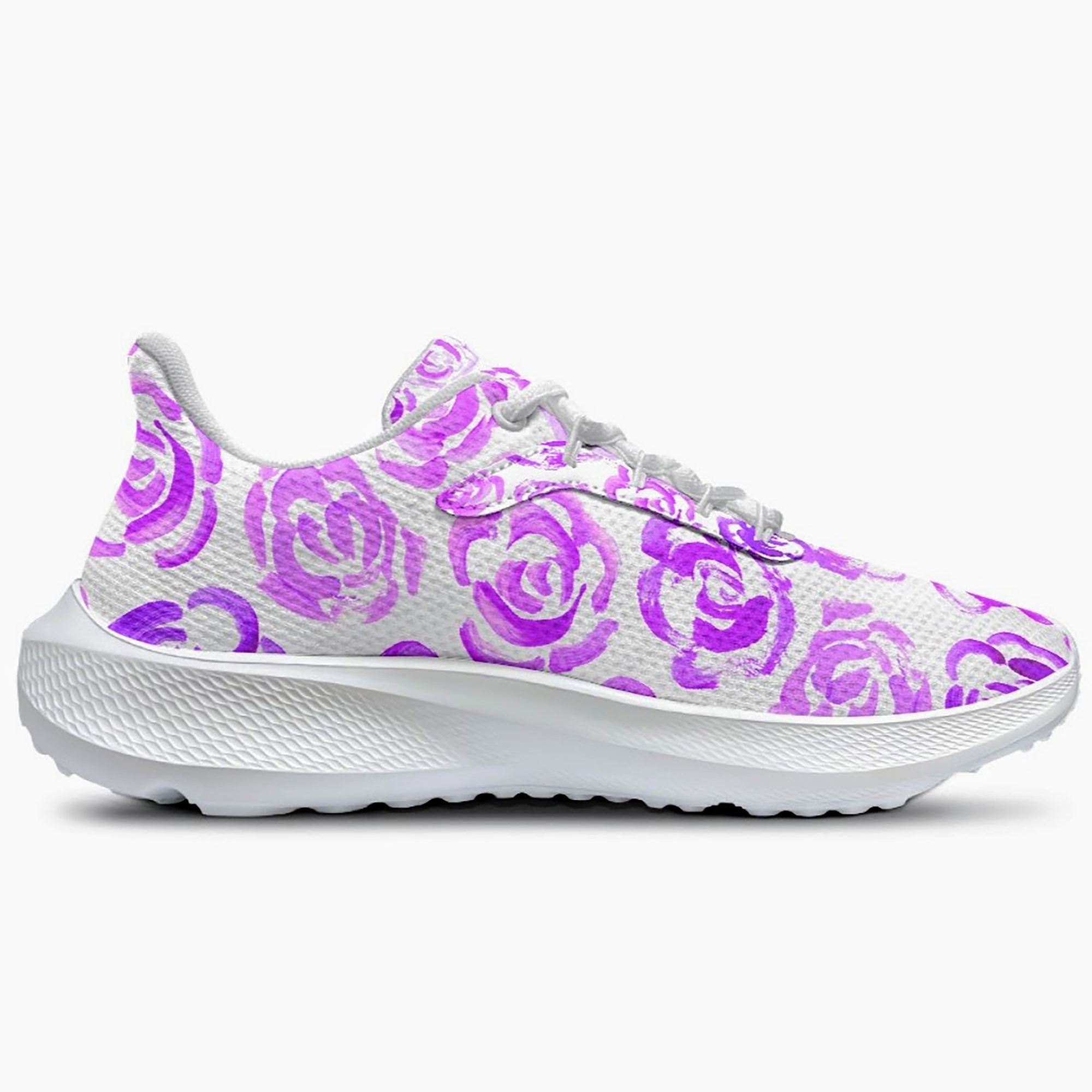 Unisex running shoes with light purple flower blossoms. Women's & men's lightweight sports shoes.