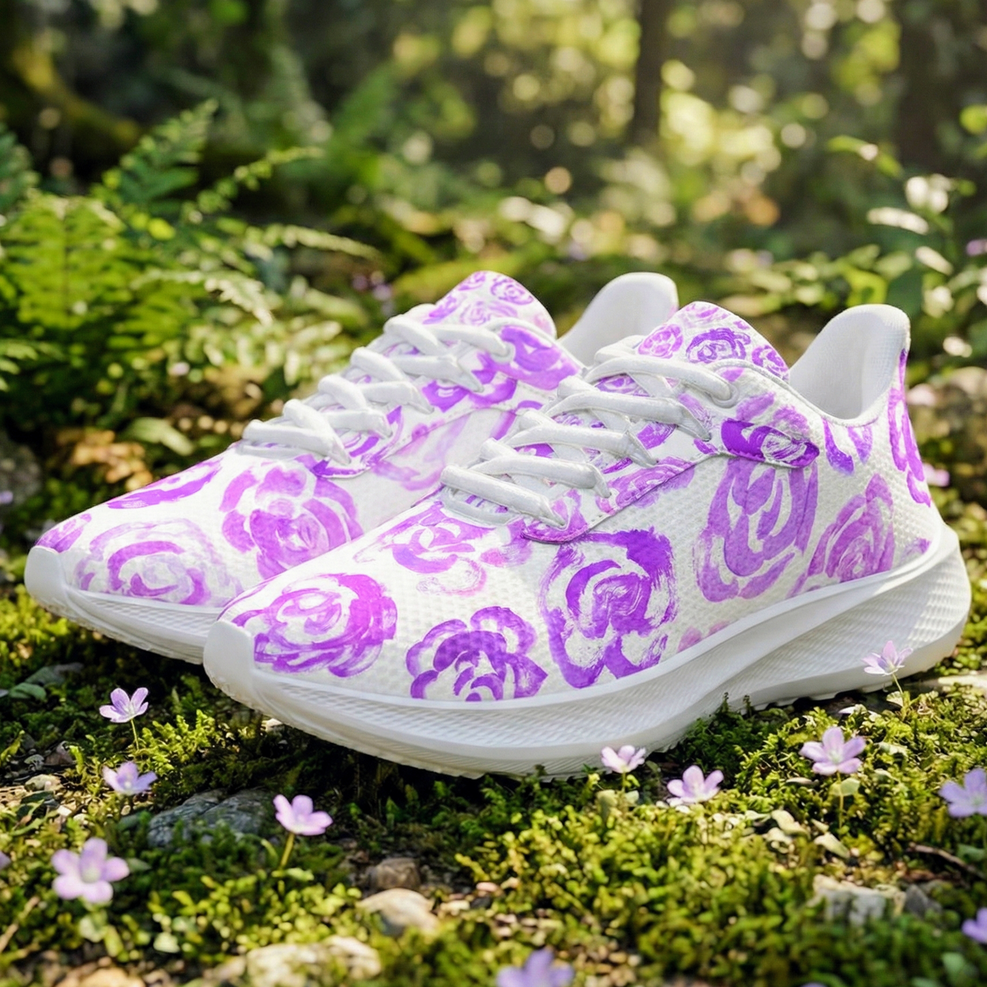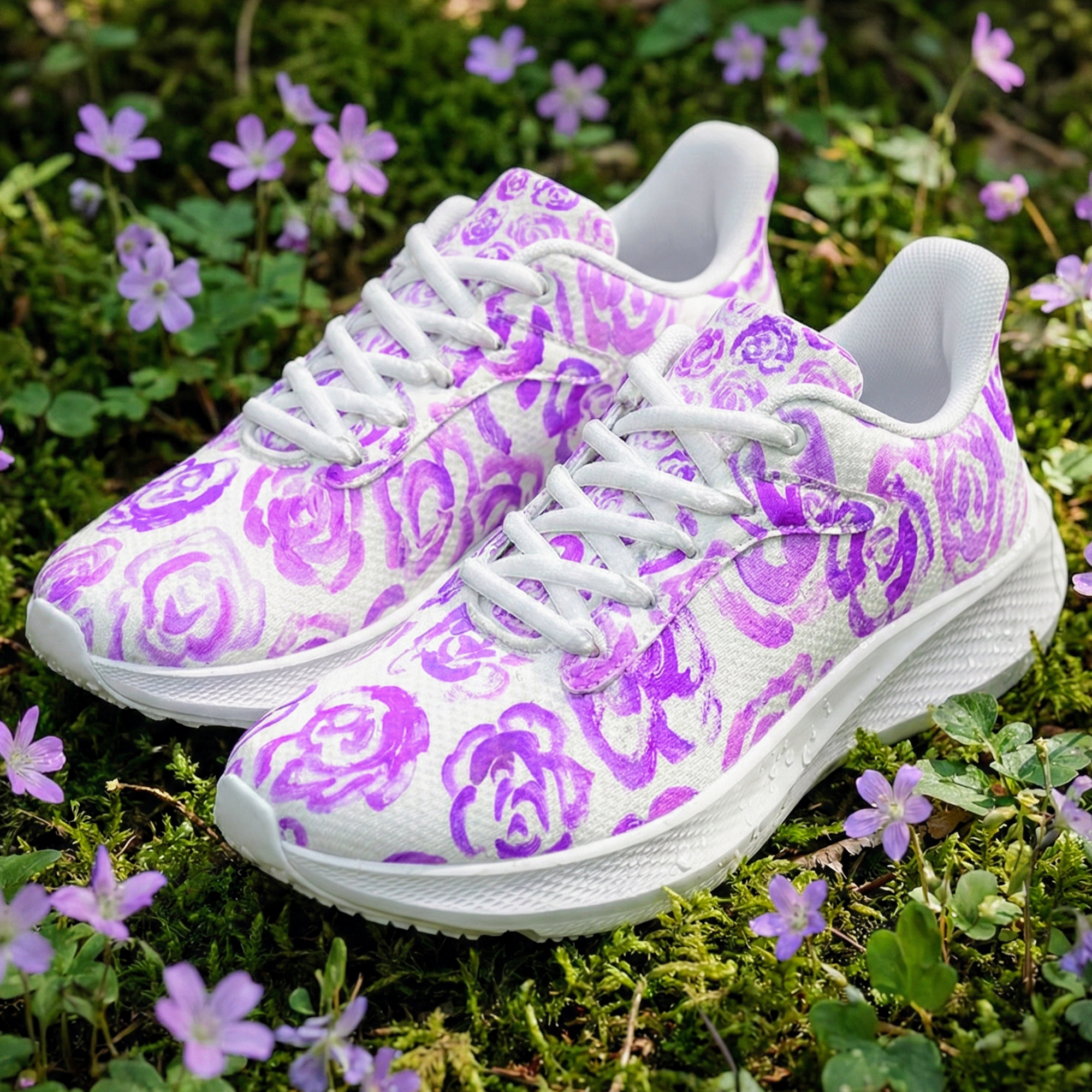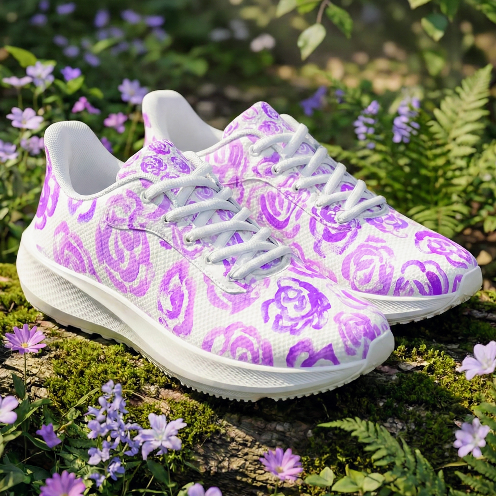 These unique running shoes with light purple flower blossoms aren't just footwear—they are a tribute to the boundless imagination of childhood.