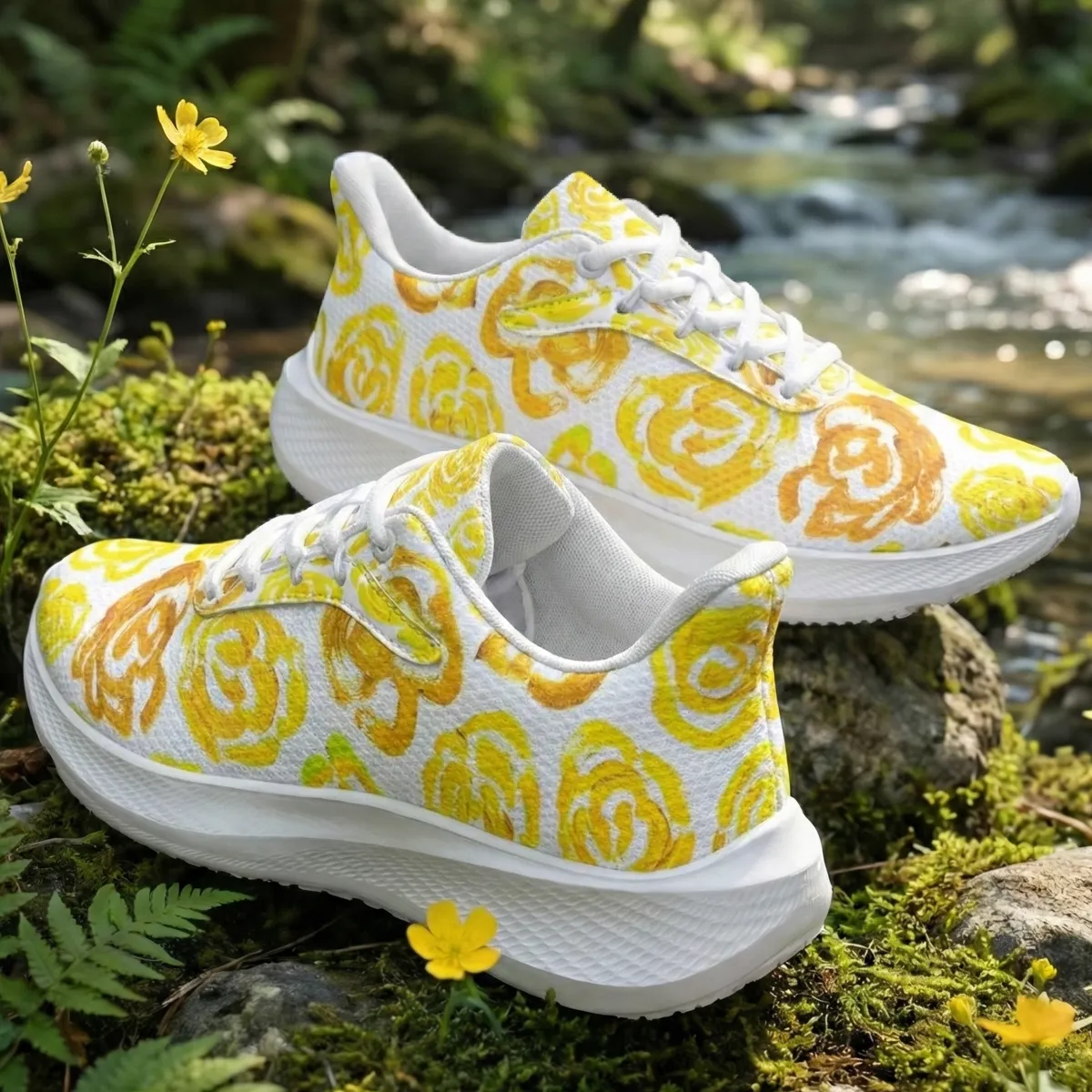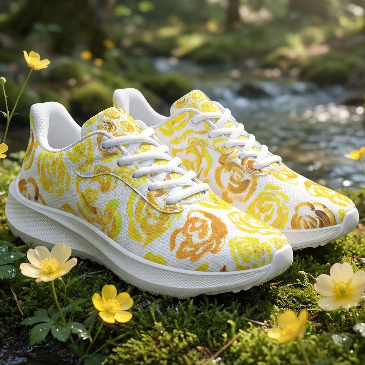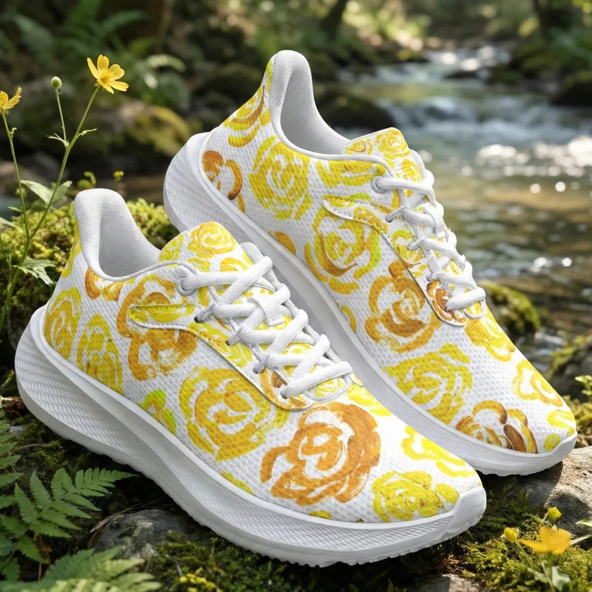 Running Shoes with Yellow Flower Blossoms (Unisex) Floral Print Running Shoes | Mia Mai Art