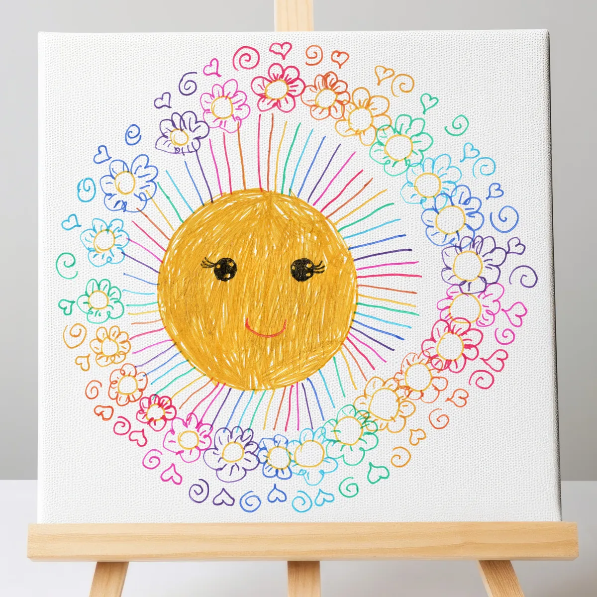 💝 Why You’ll Love It  This artwork brings happiness, warmth, and color to any space. Whether you display it in your home or gift it to loved ones, this artwork carries the joyful spirit of childhood creativity—making it not just a decoration, but a meaningful treasure.