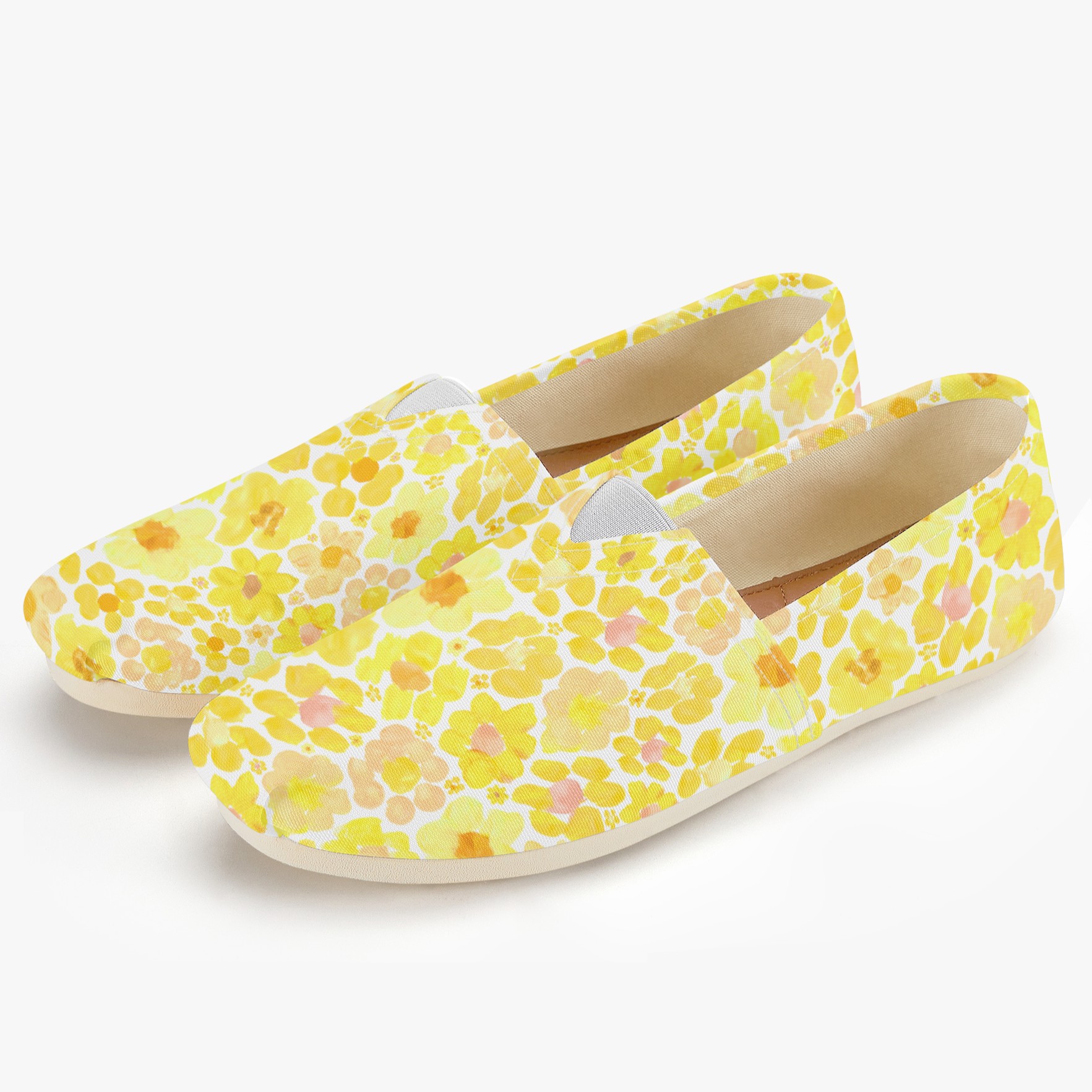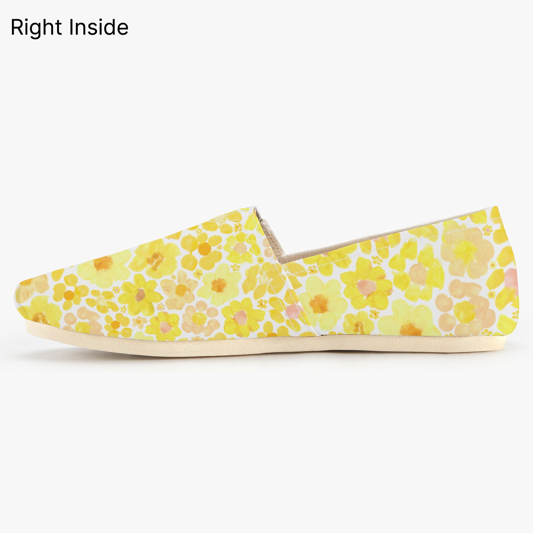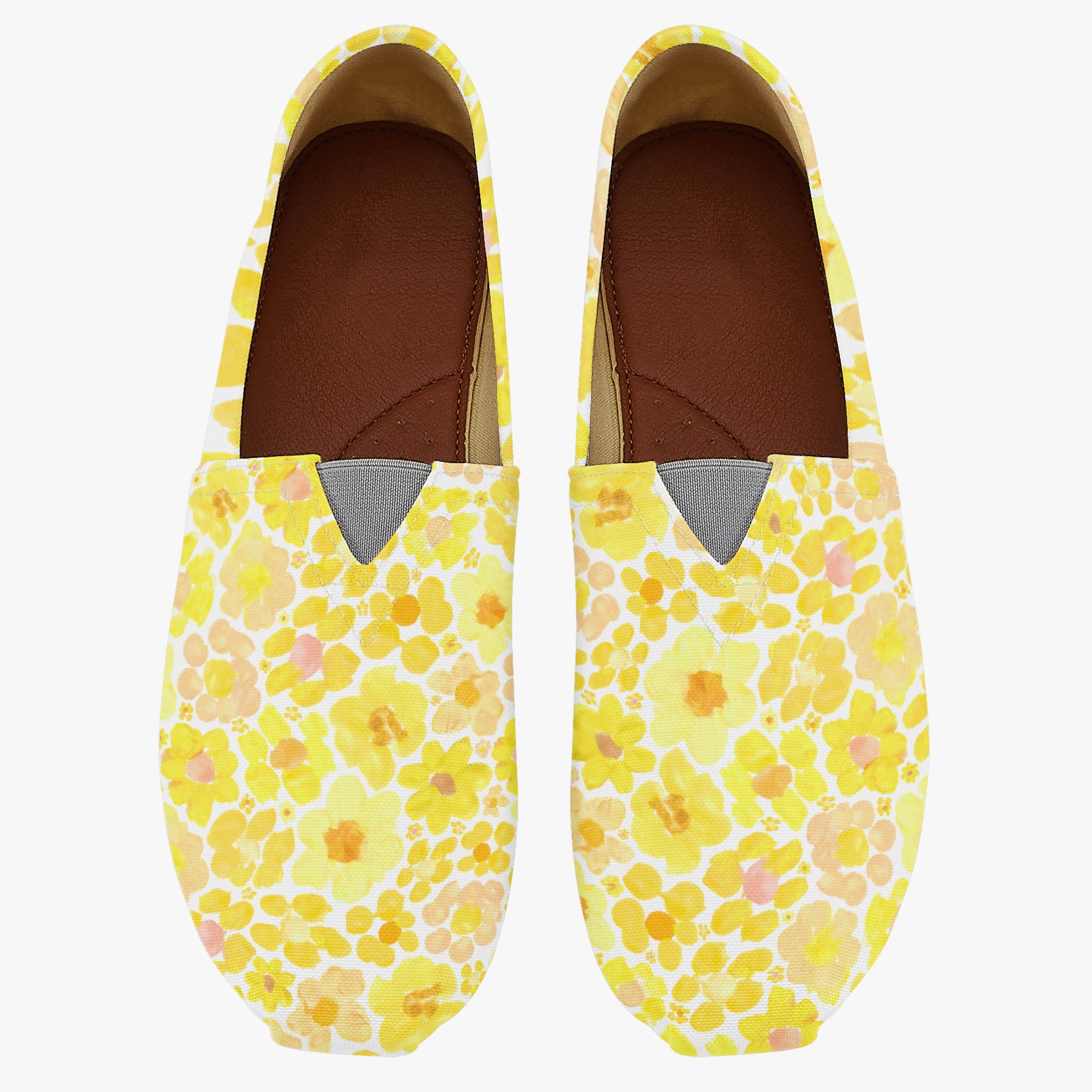 Yellow Floral Canvas Toms Style Shoes - Unisex Slip-On Loafers with Flower Blossom Paintings