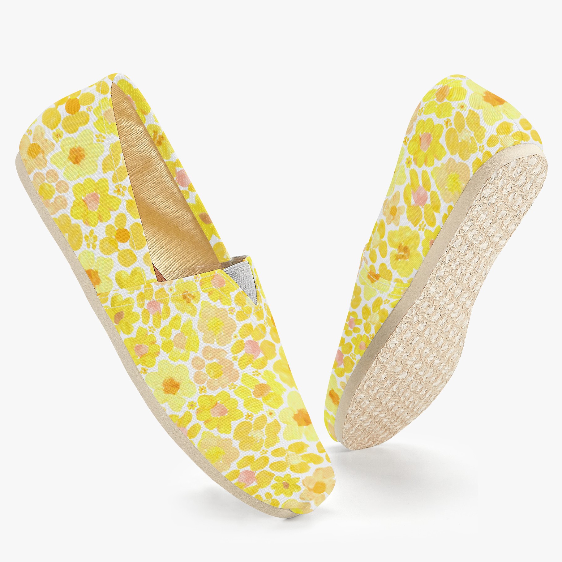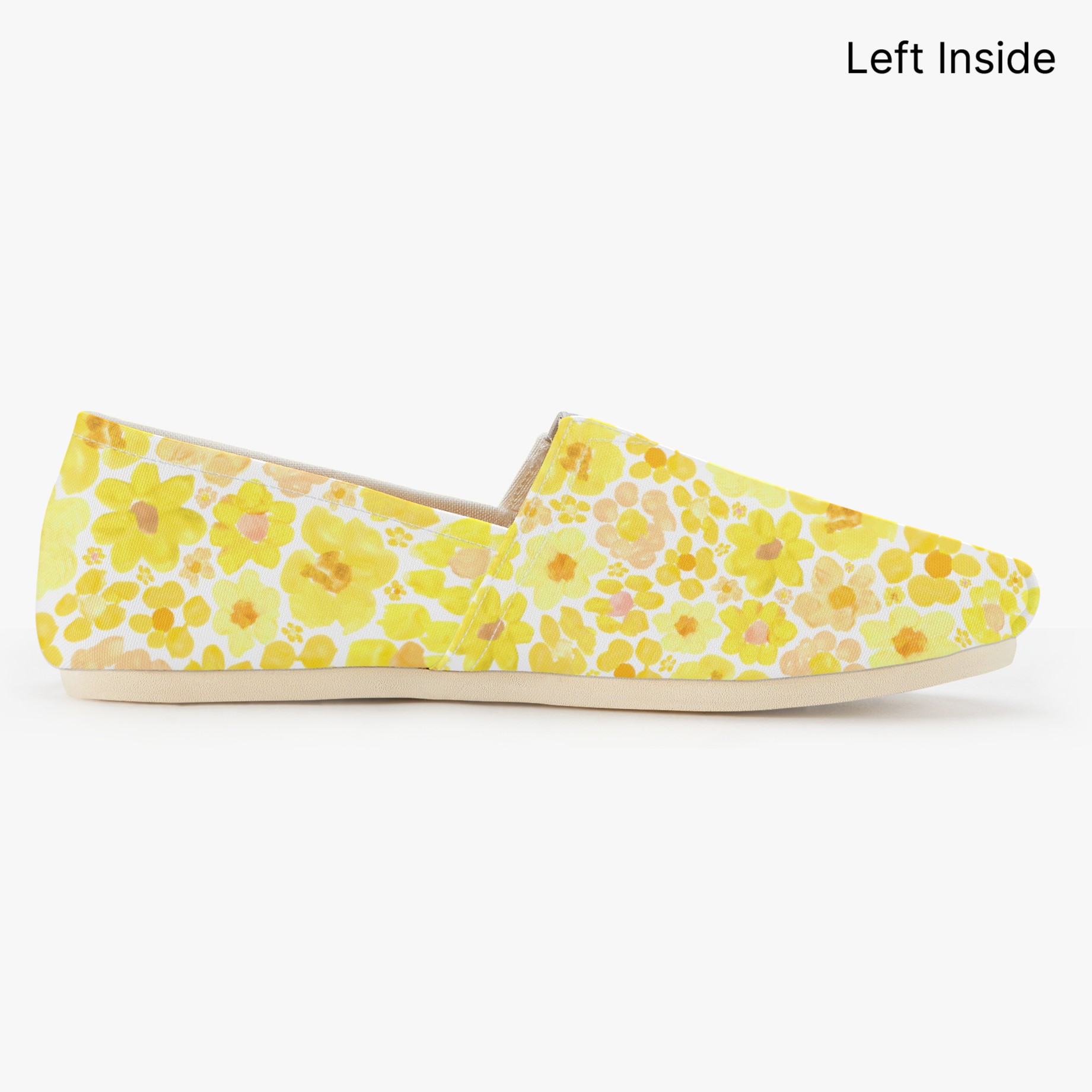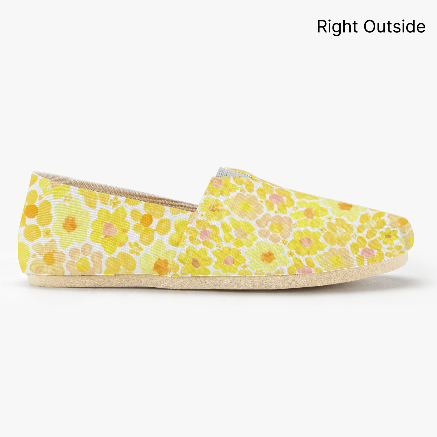 Yellow Floral Canvas Toms Style Shoes - Unisex Slip-On Loafers with Flower Blossom Paintings