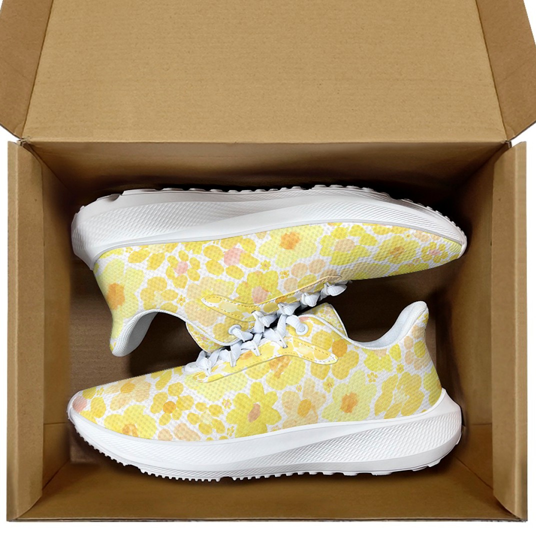 Yellow Floral Running Shoes (Unisex) with Painted Yellow Flower Blossoms | Botanical Art Sneakers